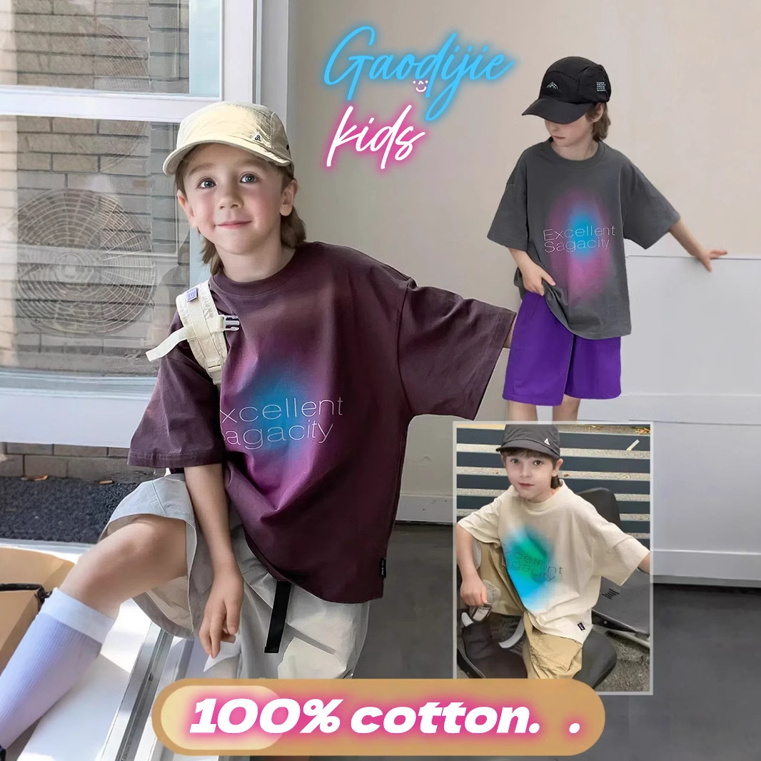 子供服夏服2024新作グラデーション男児半袖柔らかくてゆったりしています。