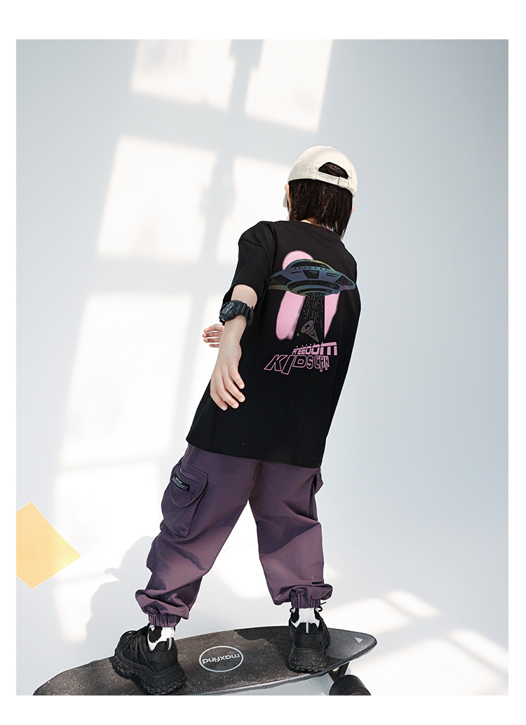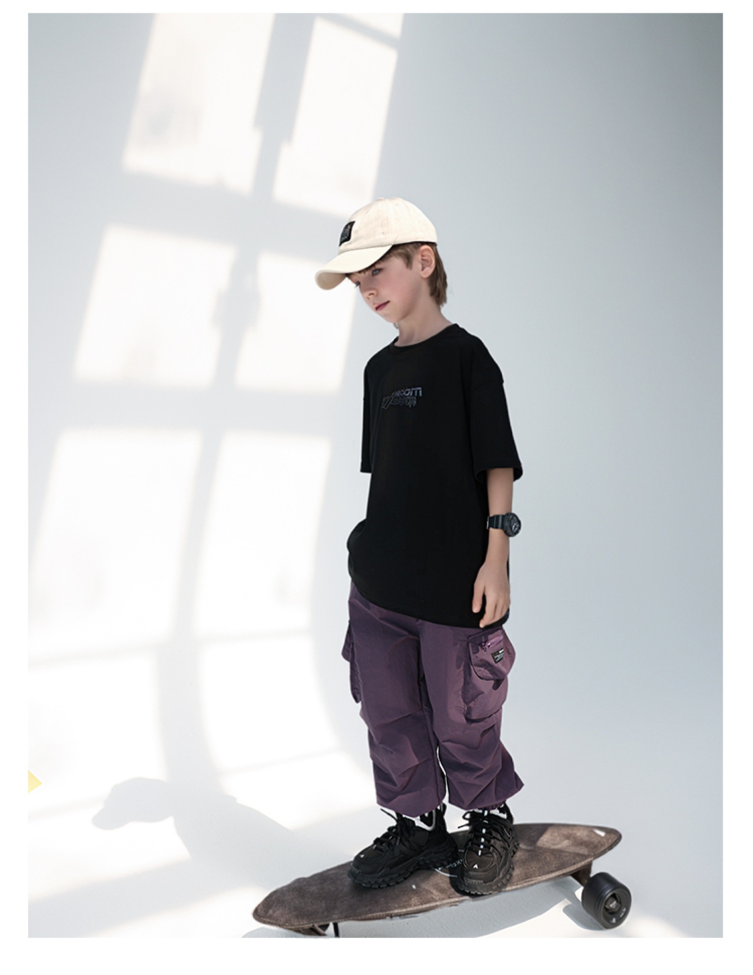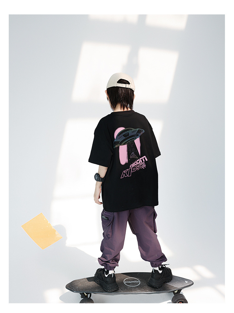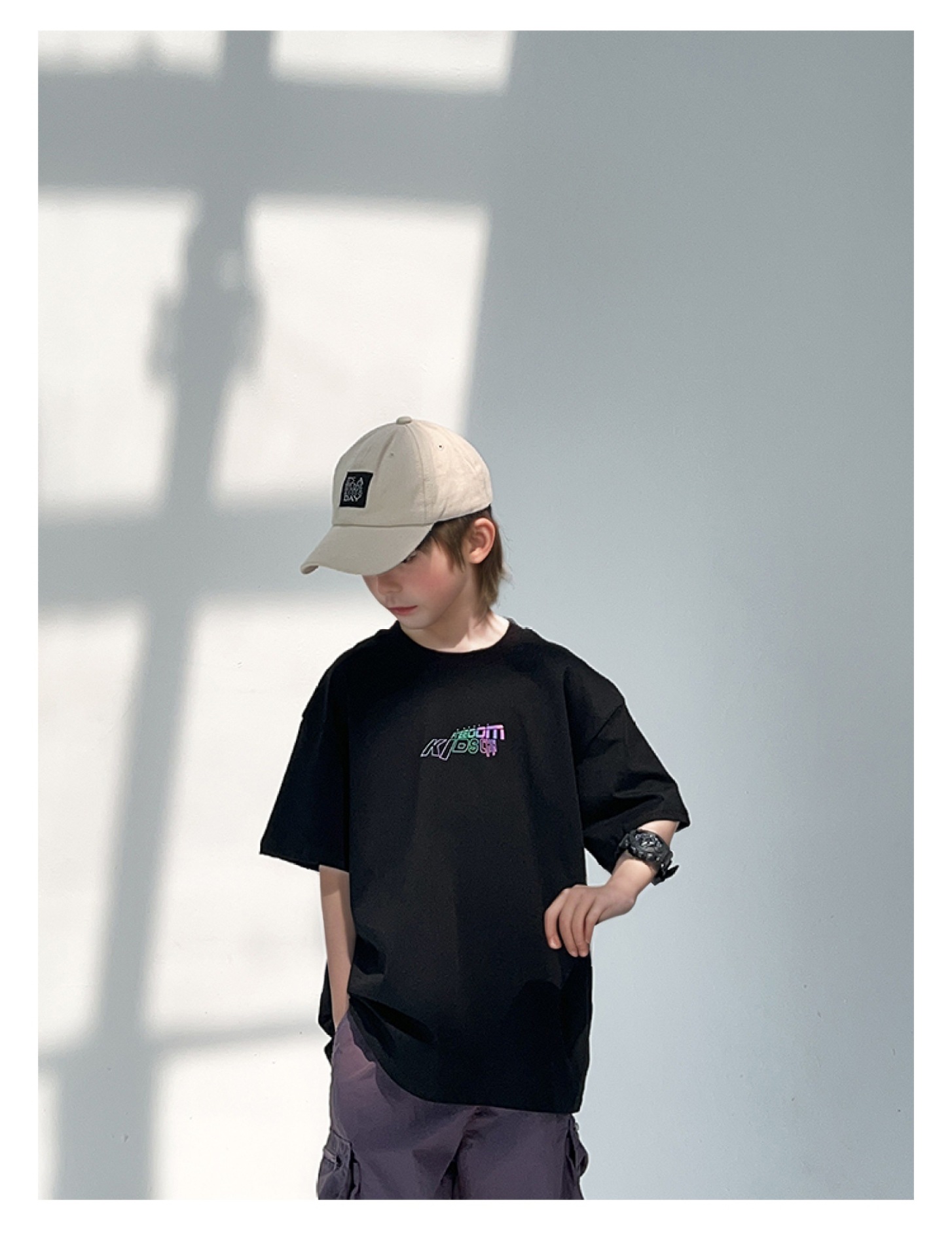 男の子半袖Tシャツ2025夏新作ストリートダンス子供用ハンサムTシャツ純綿中高生向け薄手トップス