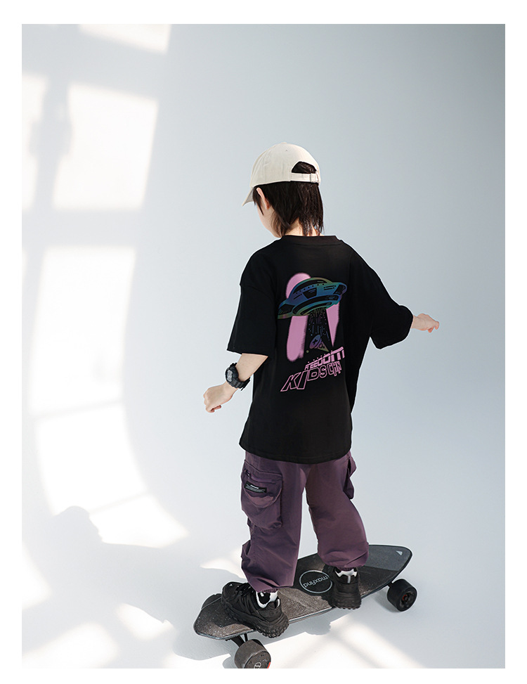 おしゃれな子供服男の子tシャツ子供夏半袖2025新型中大童薄い上着男の子ブーム