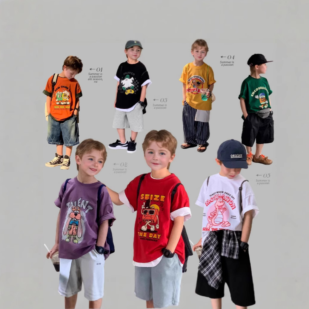 山系子供服子供プリント半袖tシャツ男児夏上着2025新型中大童赤ちゃん半袖潮