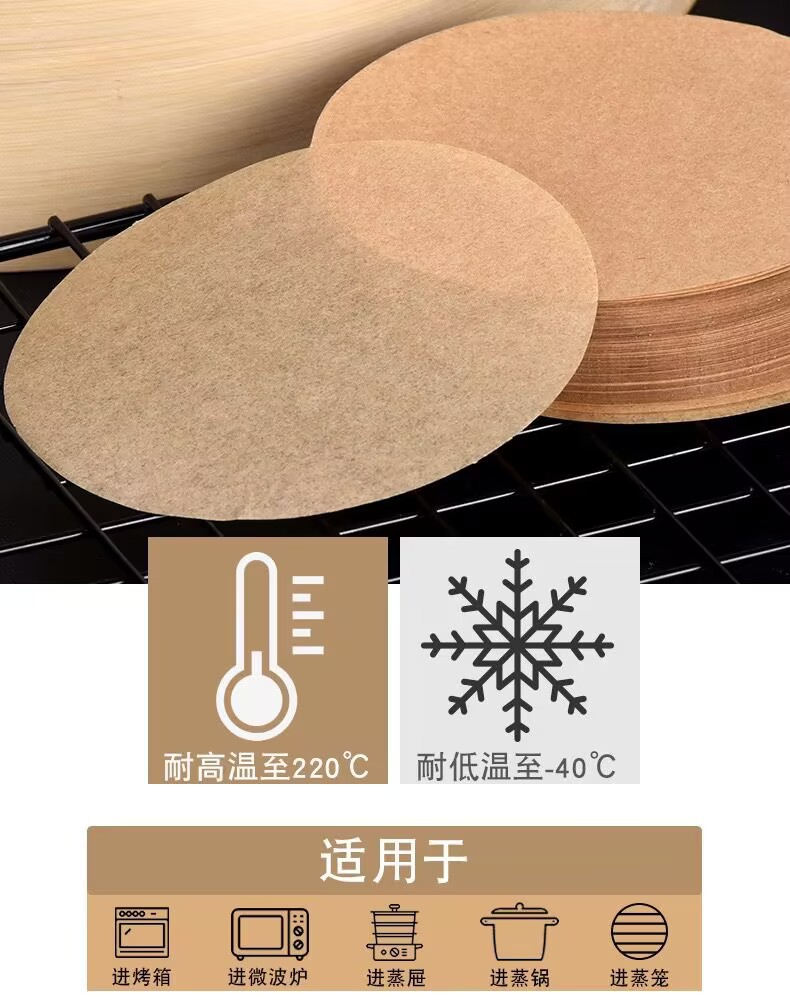 国境を越えて起爆した円形焼き紙茶色焼き油紙焼き紙シリコン油紙羊皮紙フライヤー紙