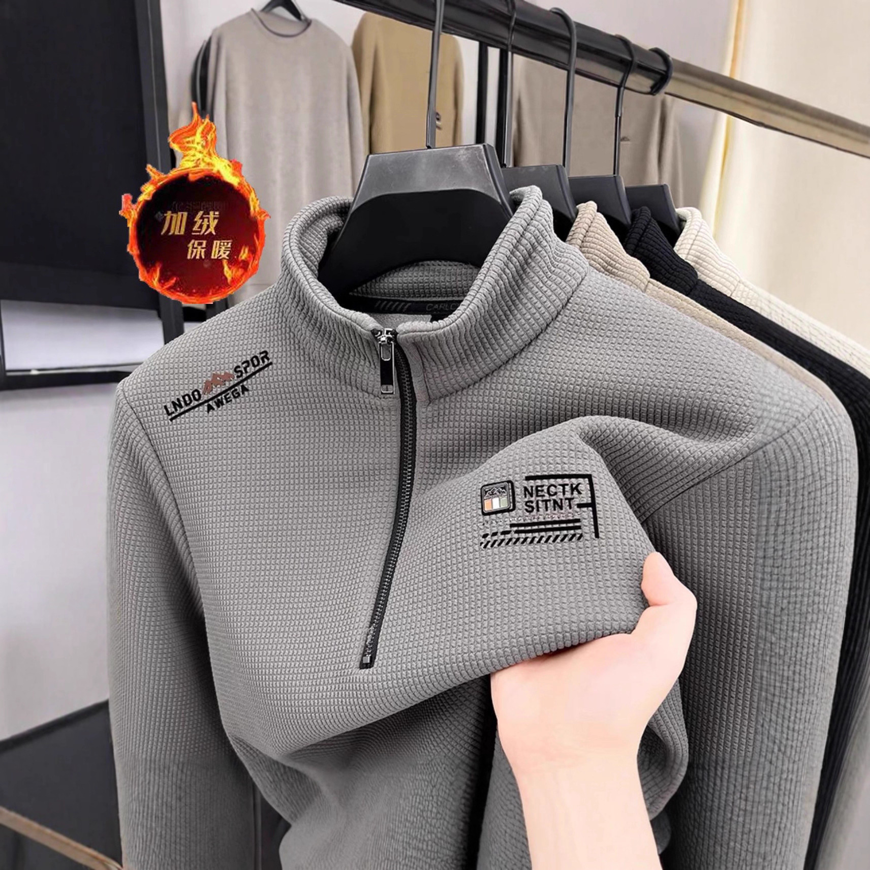 秋冬时尚男士卫衣帅气百搭半拉链立领外套男加绒加厚上衣外穿