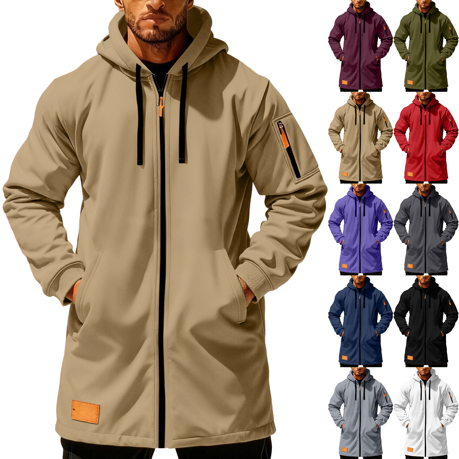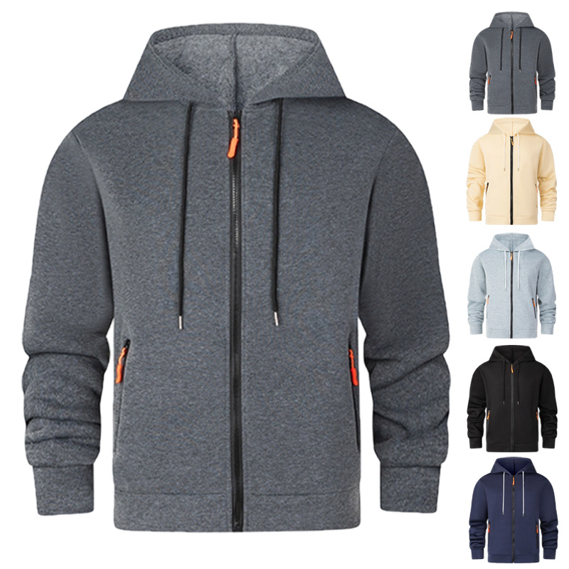 2025 秋冬新款男士拉链长款连帽卫衣 休闲运动外套休闲外套夹克
