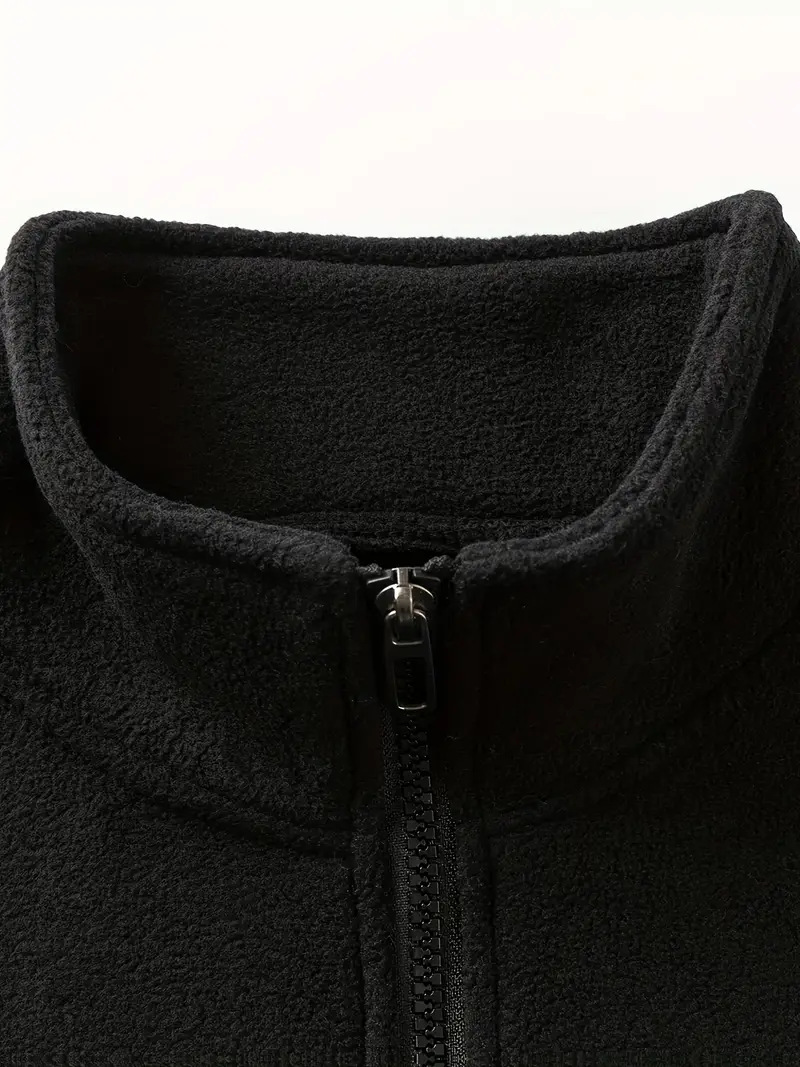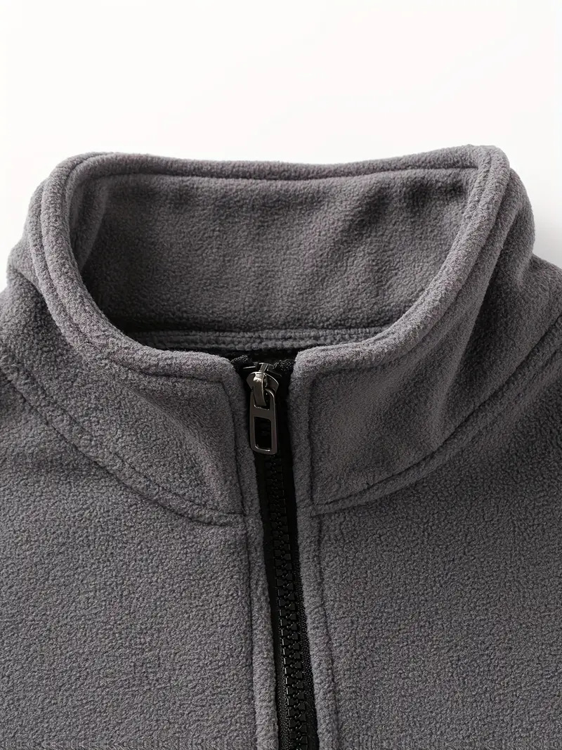 クロスボーダー欧米風メンズジップアップスタンドカラーフリーススウェットシャツ秋冬暖かいゆったり無地アウトドアカジュアルジャケットメンズ