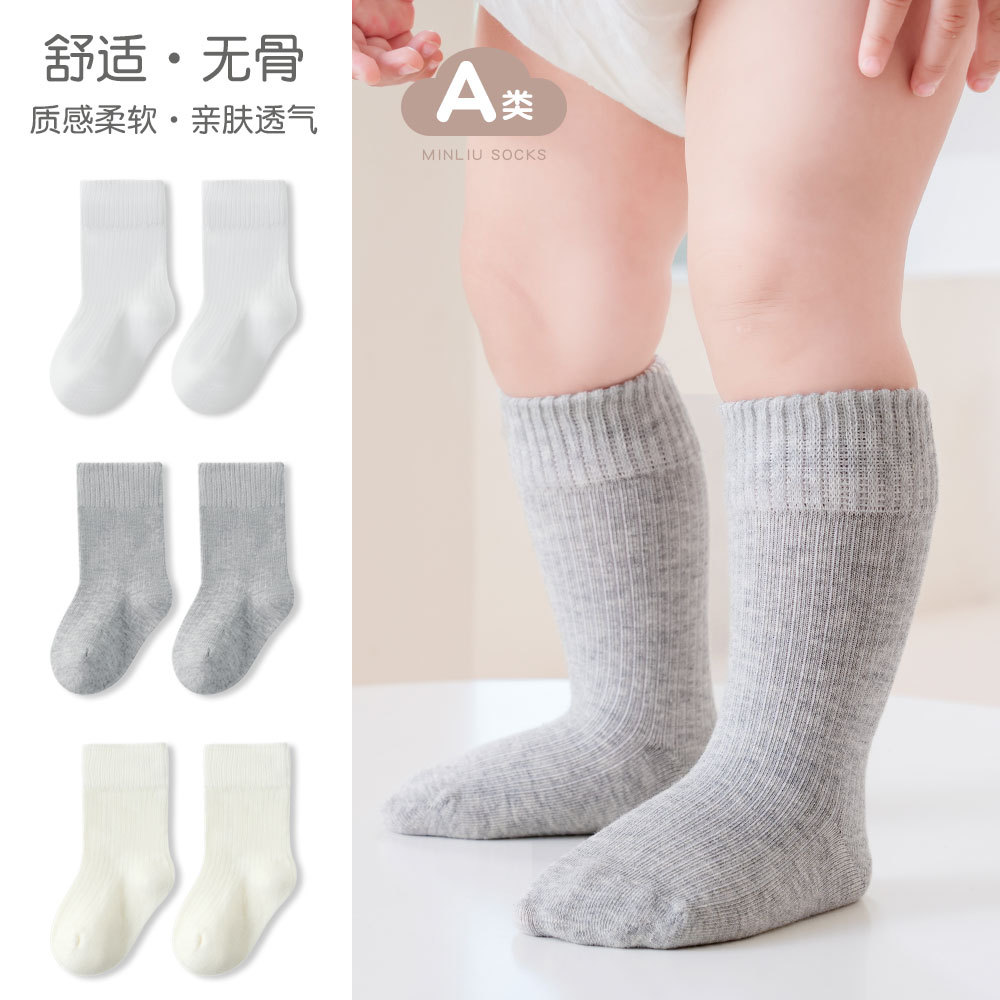 敏榴秋冬新作子供用靴下双針純色無骨赤ちゃん靴下韓国潮範男女子供中筒綿靴下