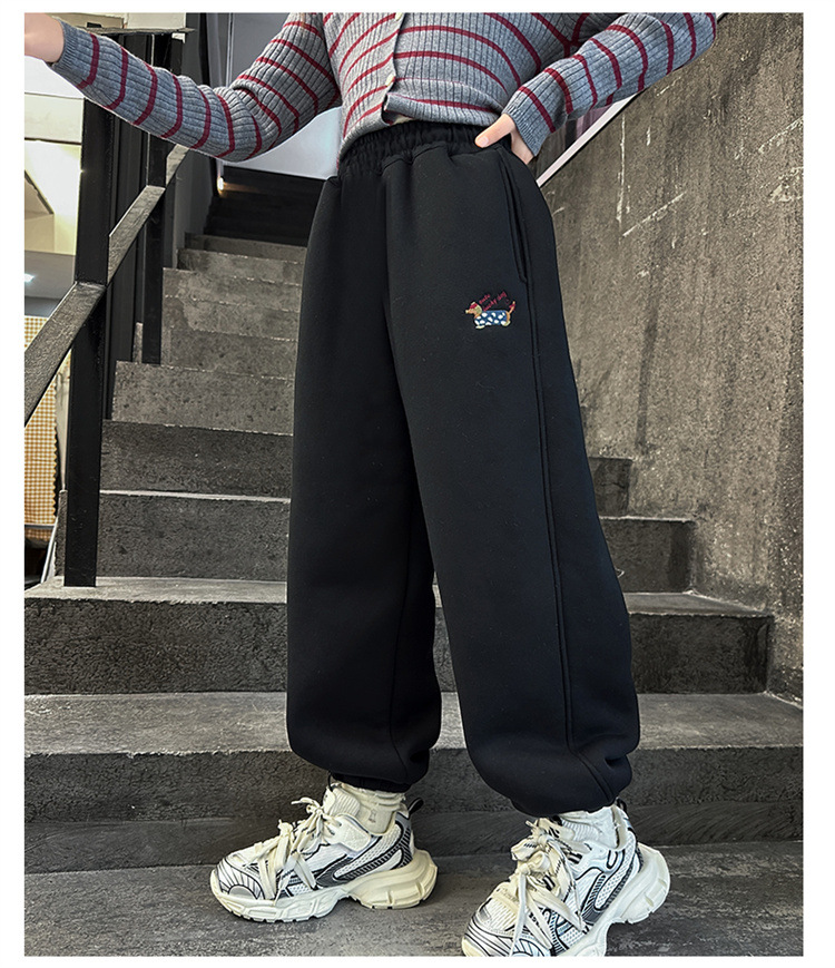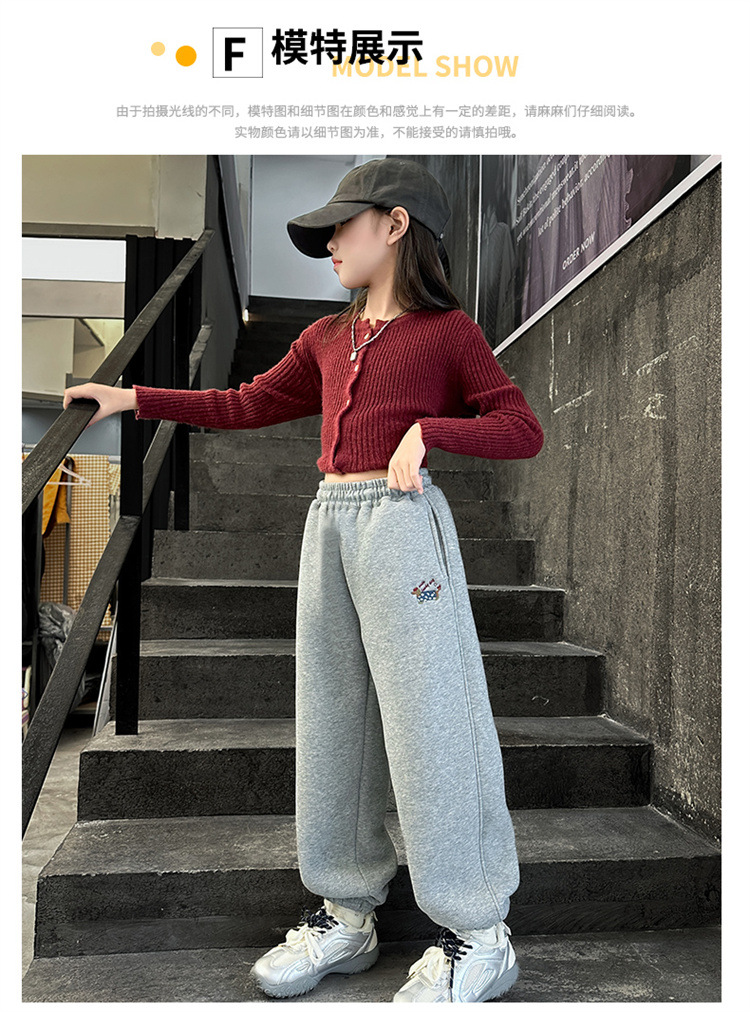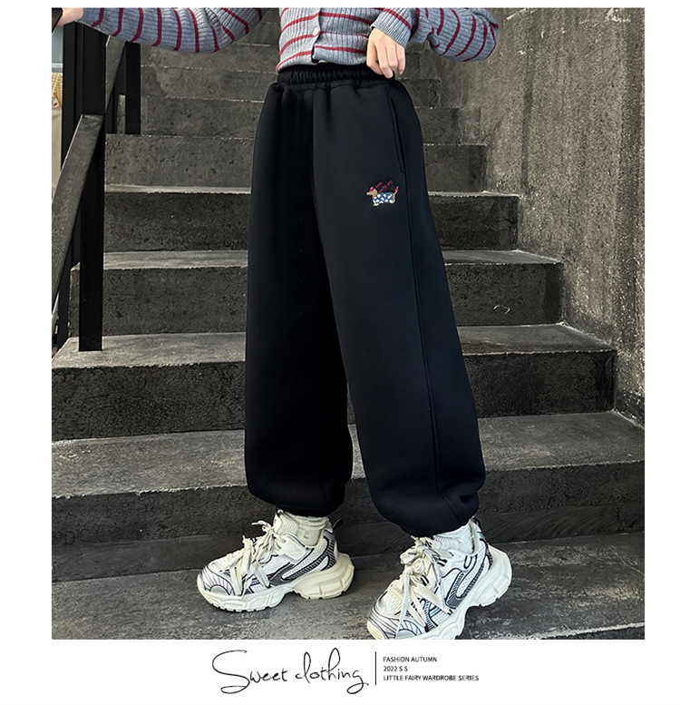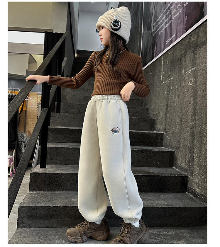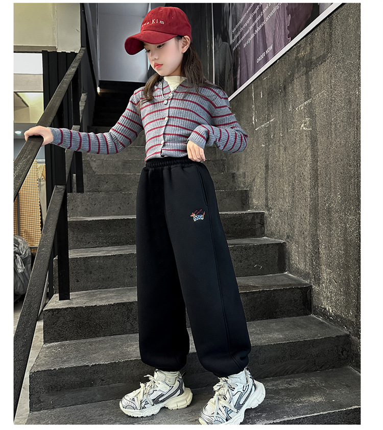 女の子とベルベットのズボン2024冬の新しい子供のファッション的な洋風のカジュアルなズボンの子供は保温ズボンを厚くした
