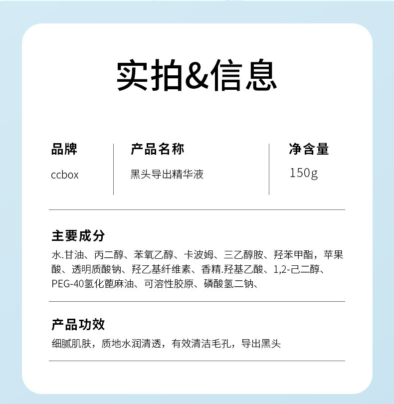 Ccbox黒頭導出液は鼻の毛穴の黒頭を温和に清潔にして、毛穴の粗さを改善するメーカーを刺激しない