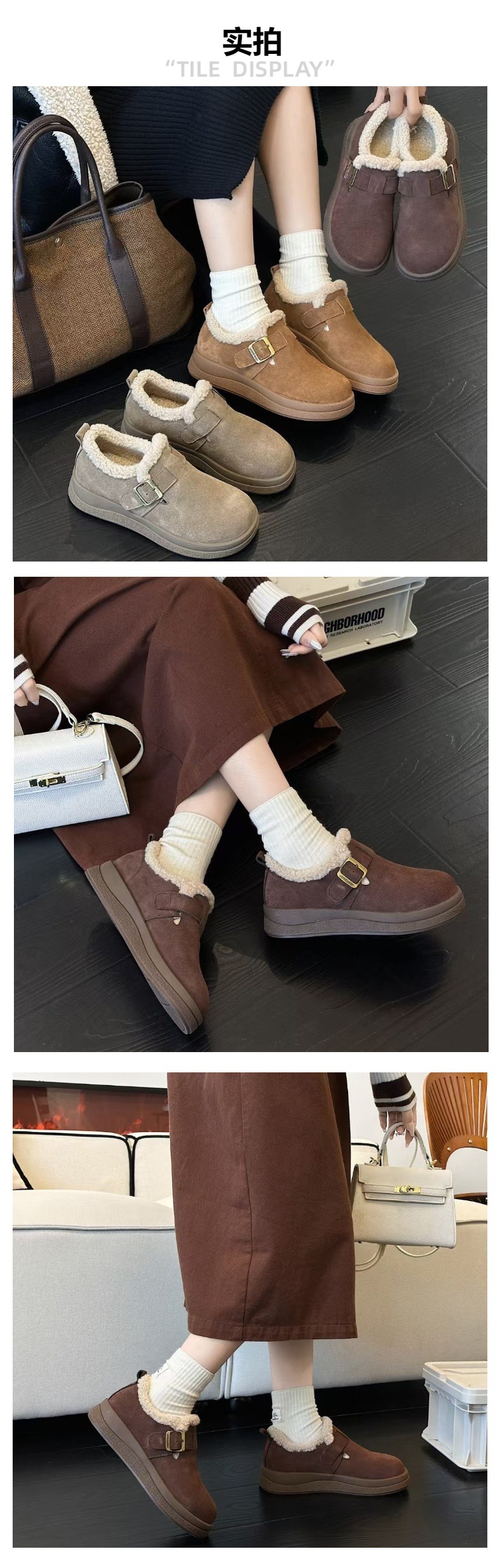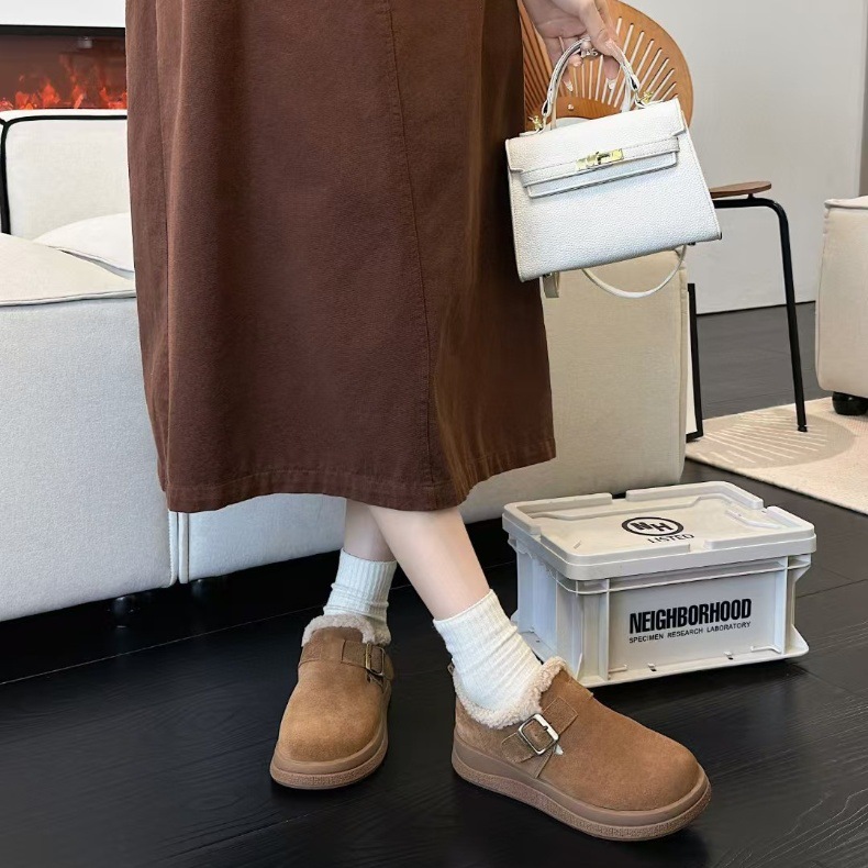 复古全包加绒勃肯棉鞋女2025新款秋冬季加厚保暖厚底毛毛雪地棉鞋