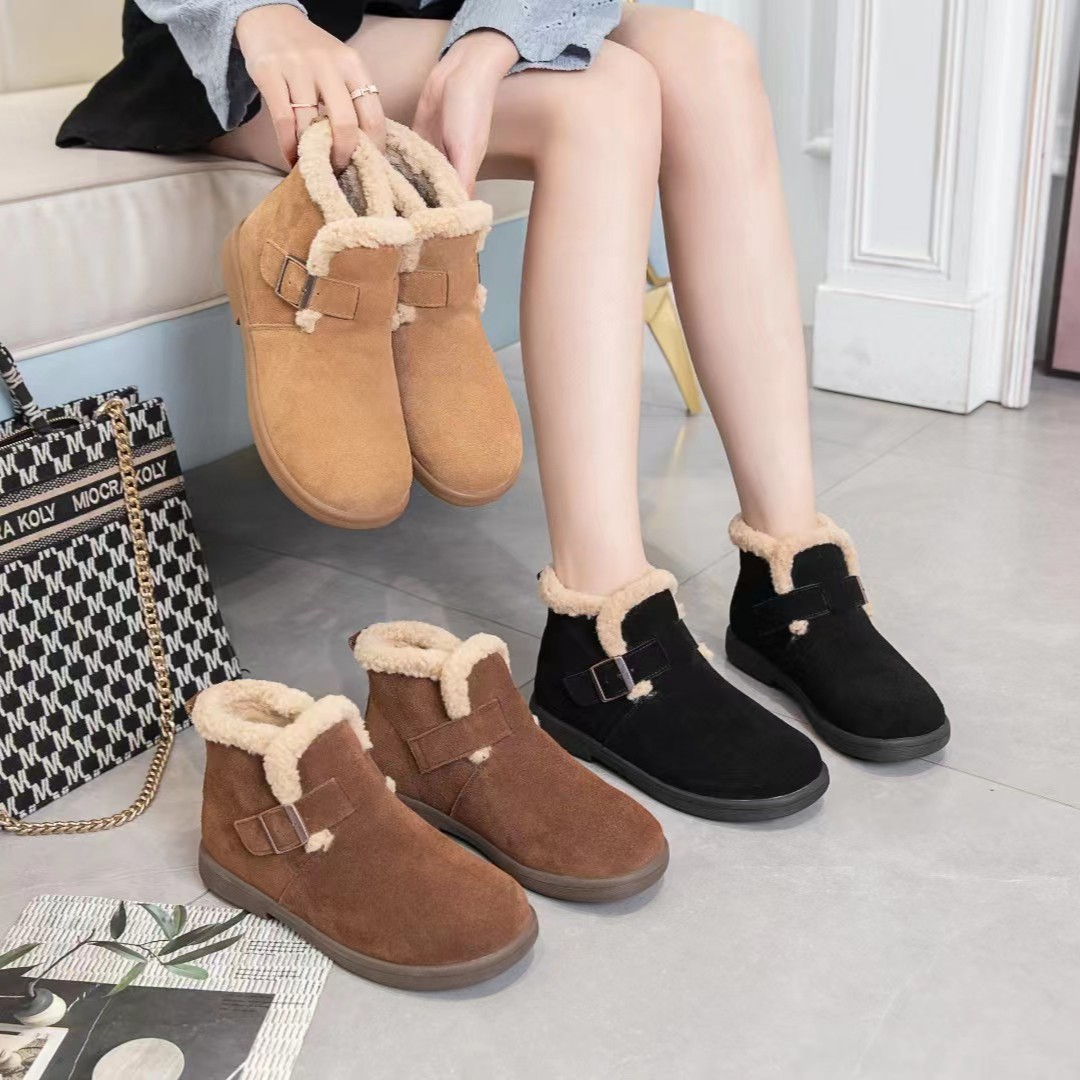 本革スノーブーツ レディース 綿靴 2025秋冬新作 ソフトソール 裏起毛 厚底 暖かい ファーシューズ フラットショートブーツ
