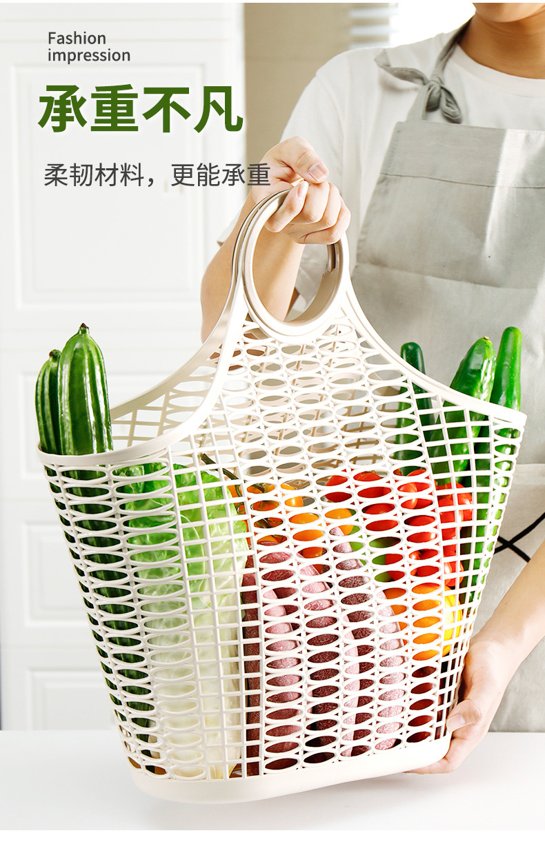 環境保護の透かし彫りの手提げ収納かごの携帯用大型の柔らかいスーパーマーケットの買い物かごの野菜かごの手提げ果物かご