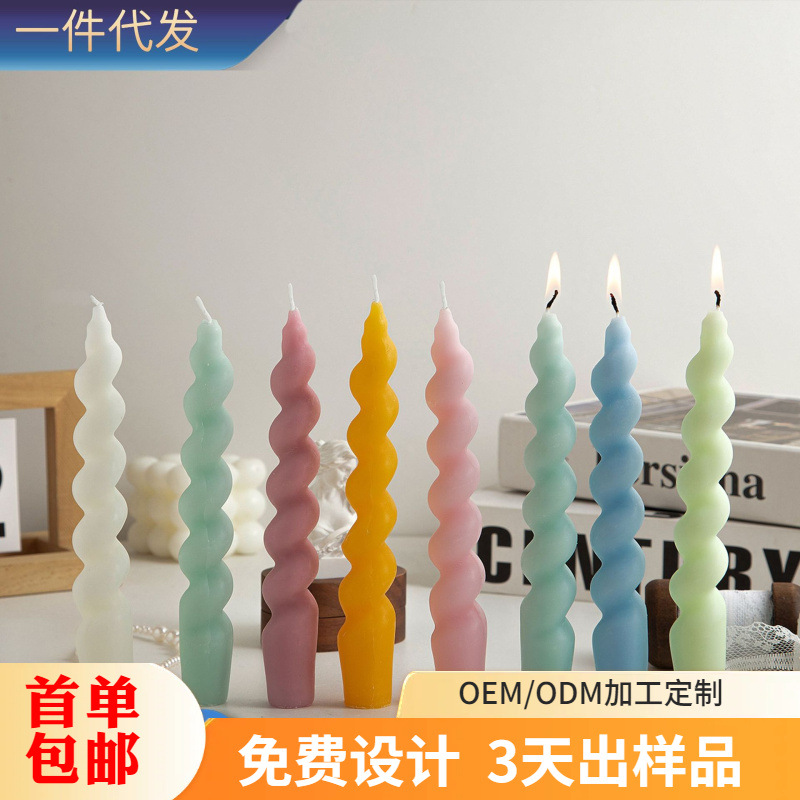 フランス風スパイラルアロマキャンドル、麻ひも模様、ねじれ、レトロな雰囲気、卓上装飾、香り、癒し系