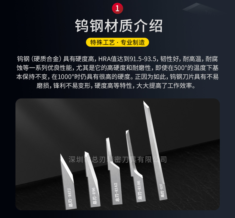 总刃钨钢振动刀刀片0.63mm 1mm 1.5mm加长加厚瓦楞纸切割气动刀片