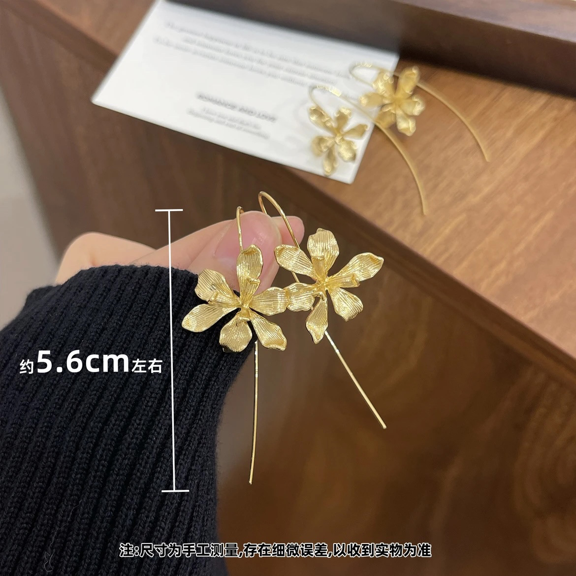 金色のアイリスの花の耳掛けの小衆の復古の気質のファッションの気質のイヤリングの女性の百合の精巧で小さい清新なファッション