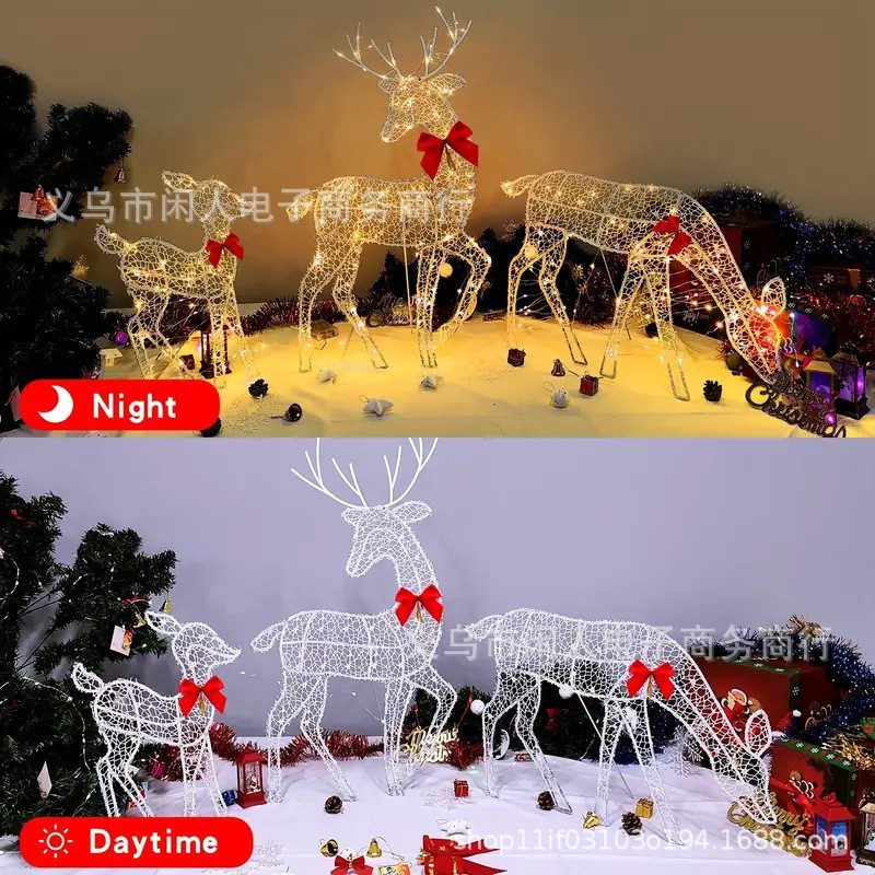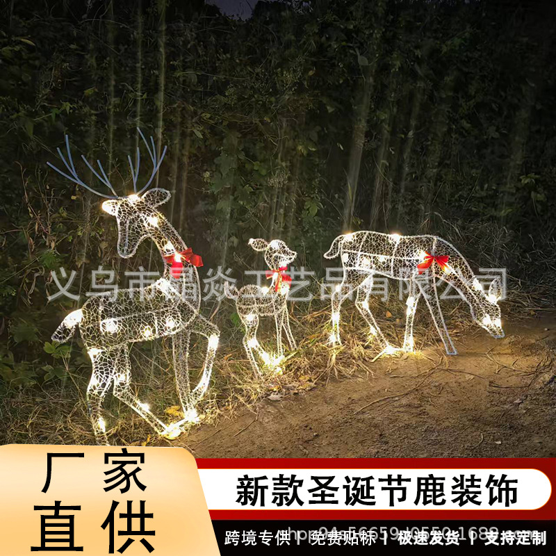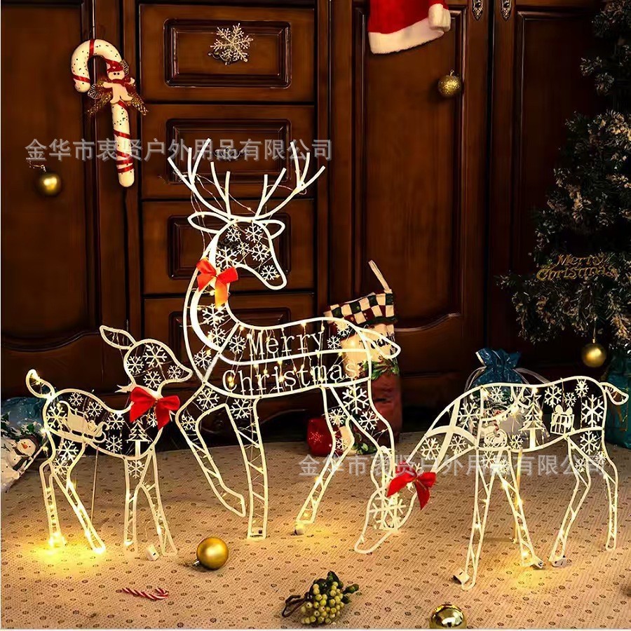 クロスボーダー亜金属鉄芸クリスマスガーデン庭園平面3d発光鹿三人家族装飾置物