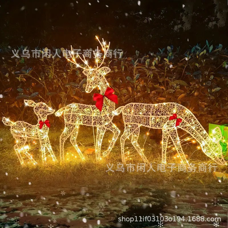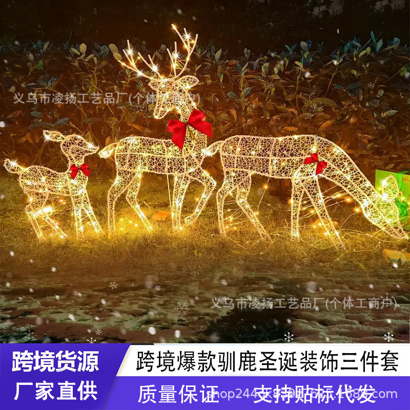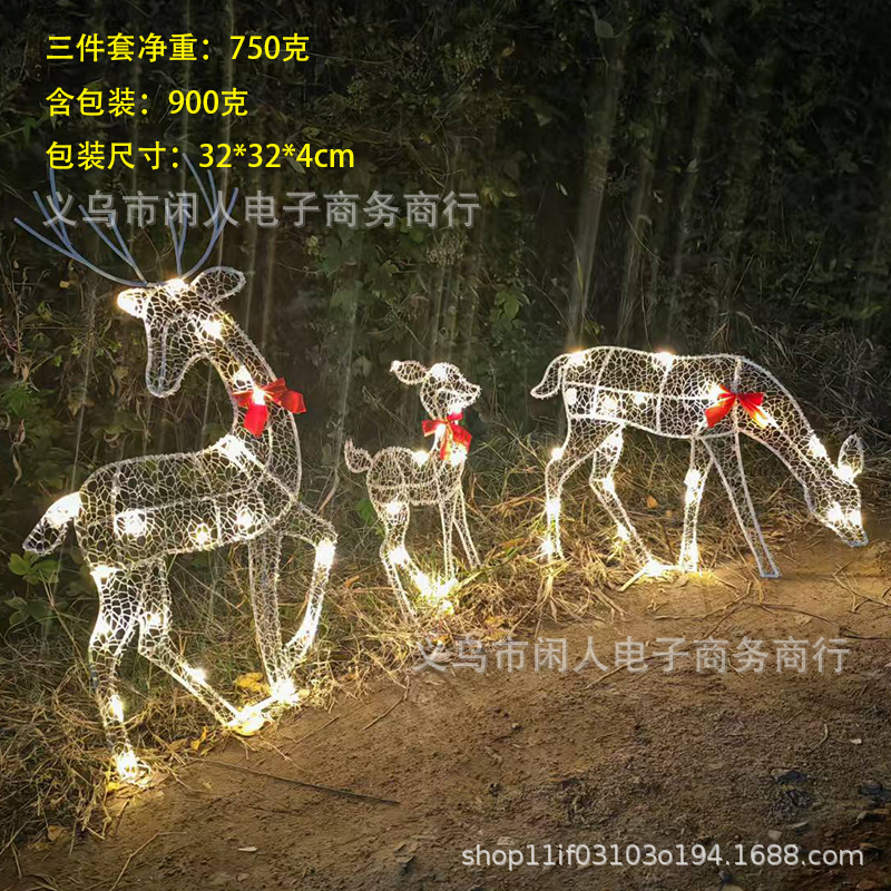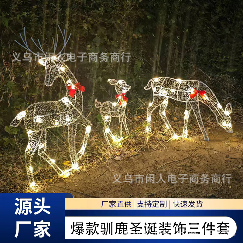 クロスボーダー新型クリスマス鹿LED家三人家族屋外金属発光置物三点セットメーカー直供