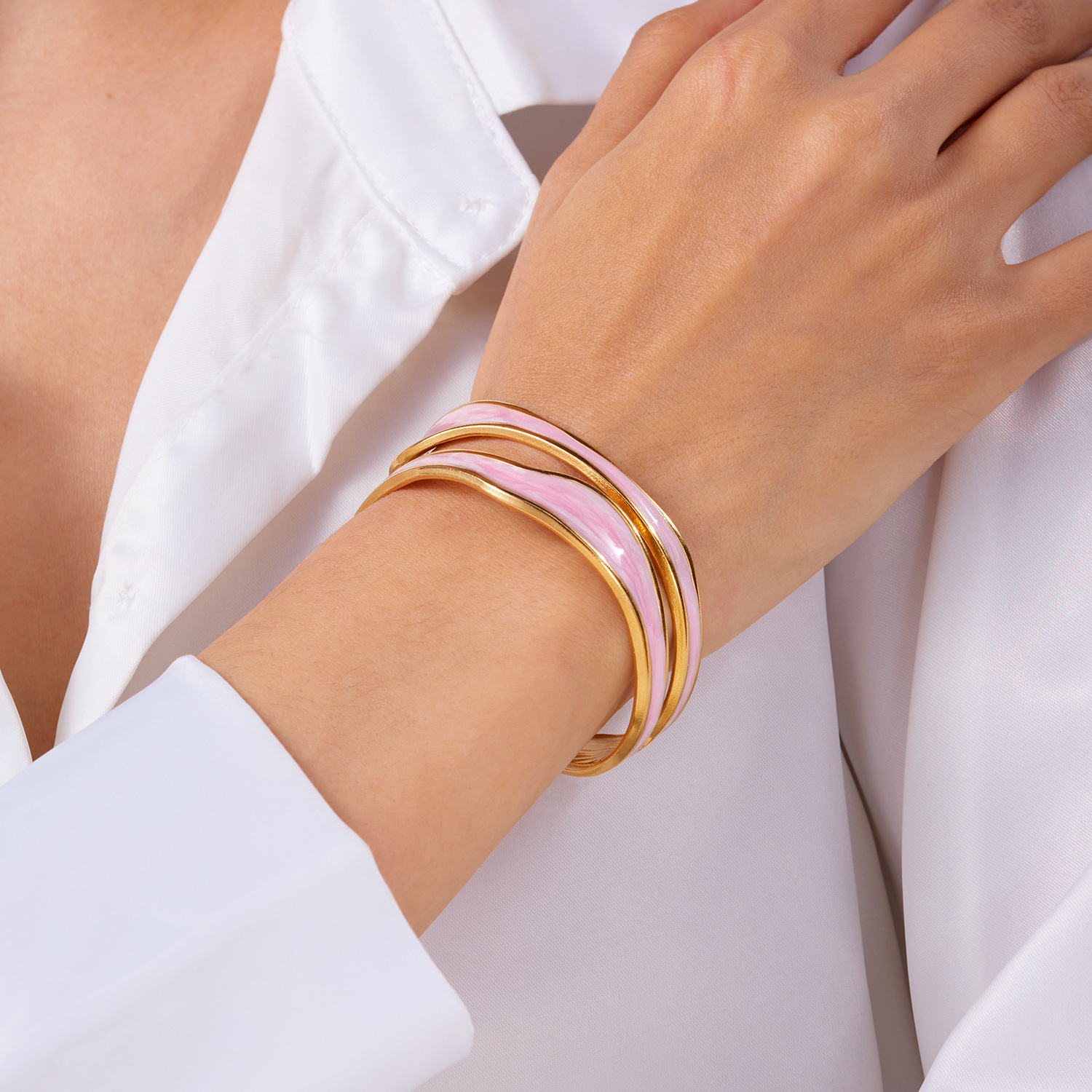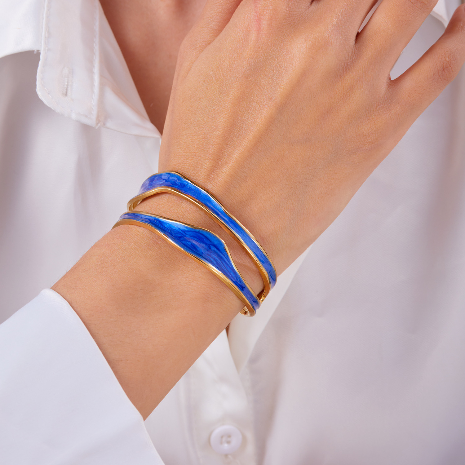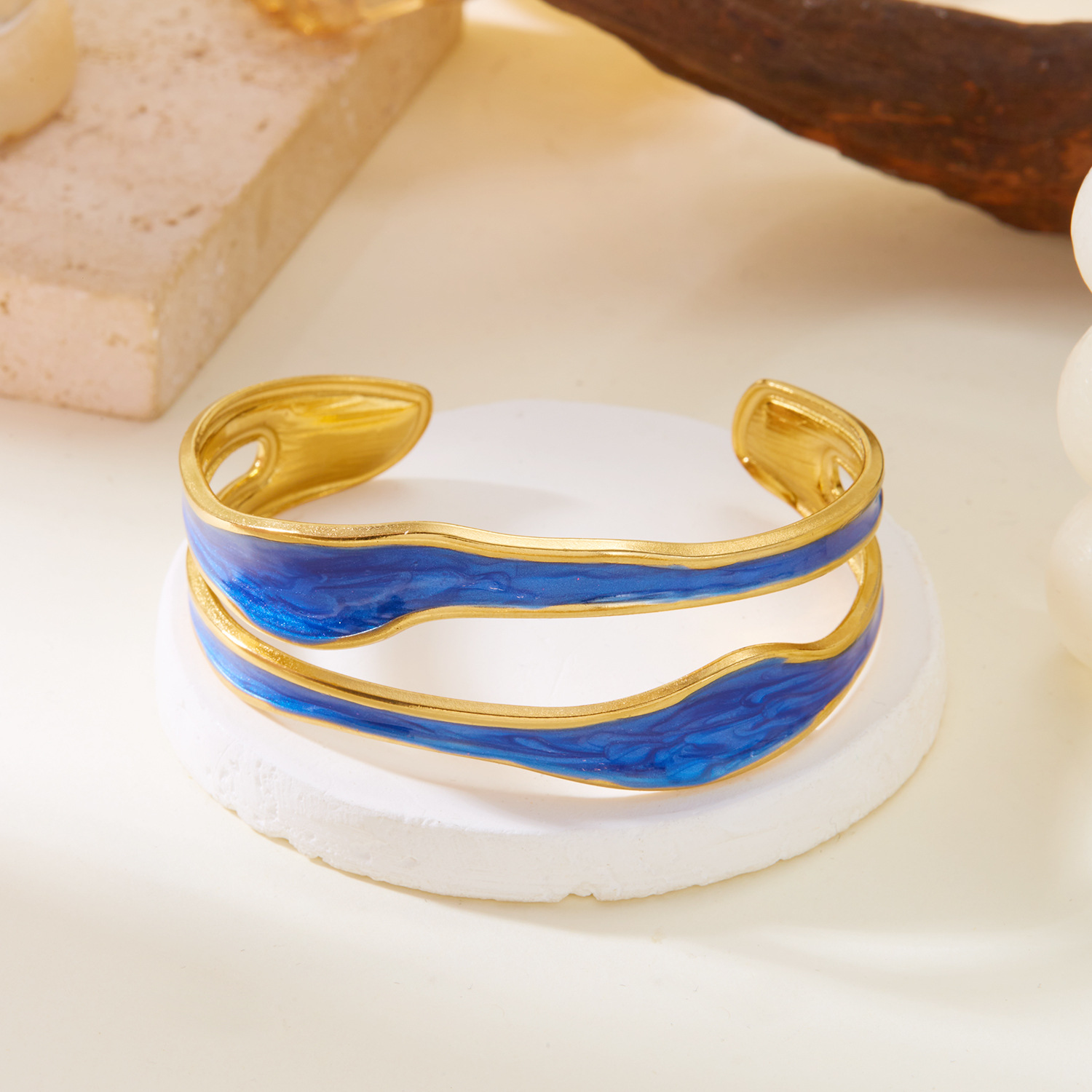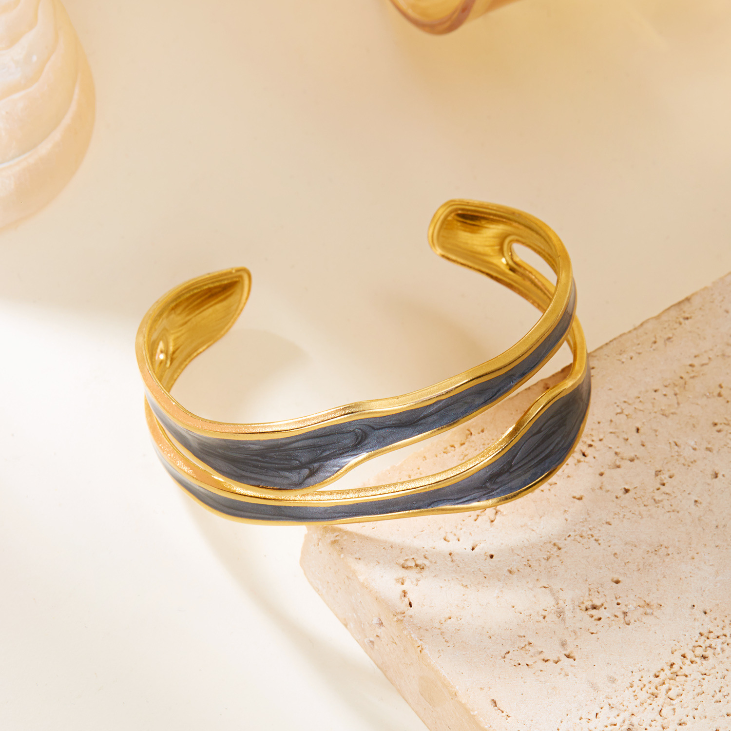 跨境新款不锈钢滴油手镯法式复古风不规则高级感可调节开口女手环