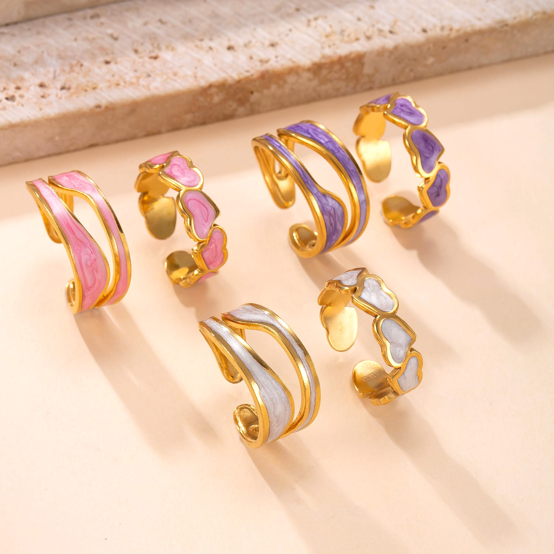 跨境爆款钛钢饰品 轻奢ins风不锈钢戒指油压滴彩色油爱心开口戒指