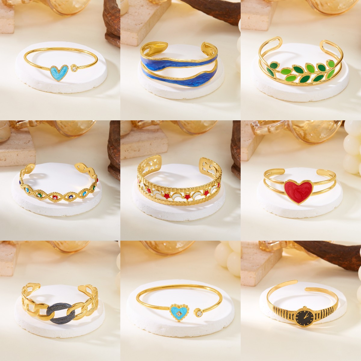 欧米の越境した新型の愛のファッションの雑誌の風のステンレスの口の腕輪の透かし彫りの月の星は油の手を垂らして飾ります。