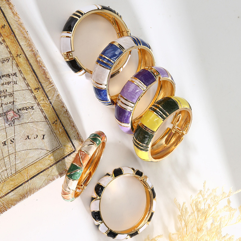 跨境欧美中东时尚波西米亚珐琅彩合金手镯欧美高级感滴油节节高百