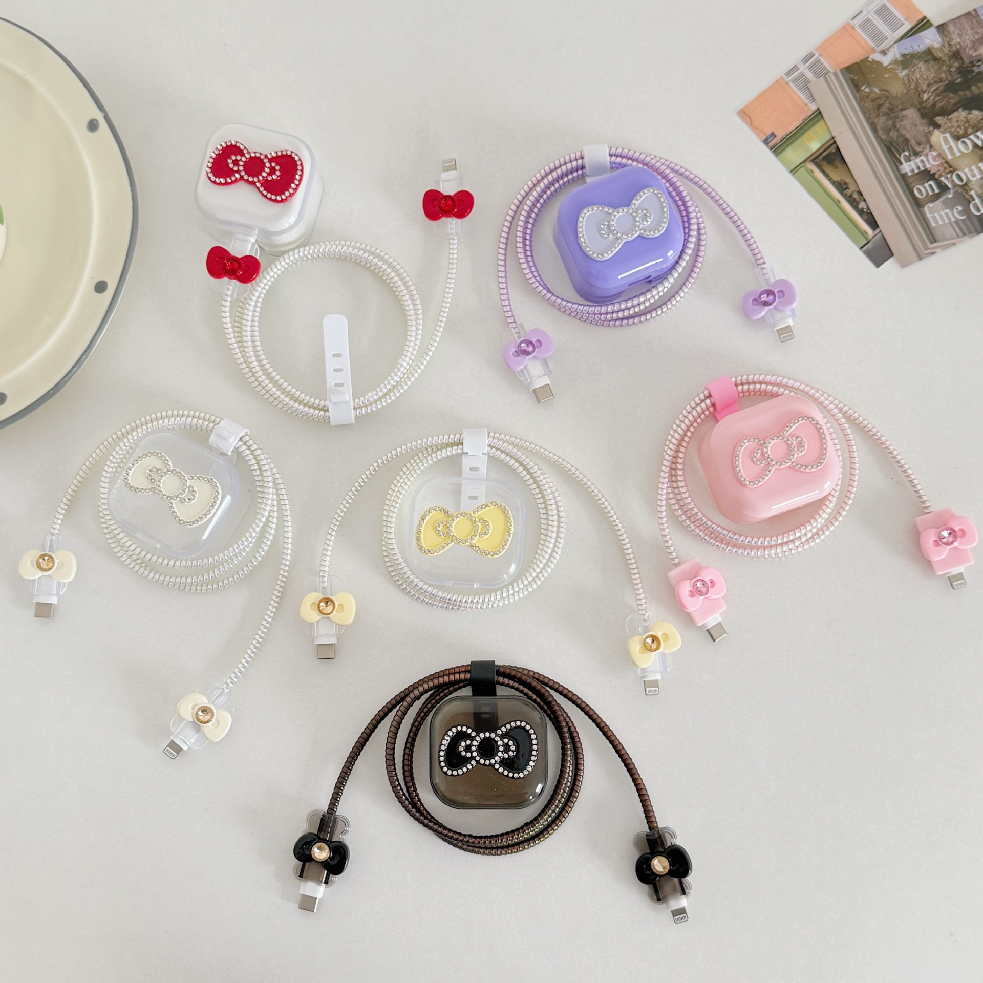 新款蝴蝶结闪钻充电器保护套适用苹果快充头保护套英规20W