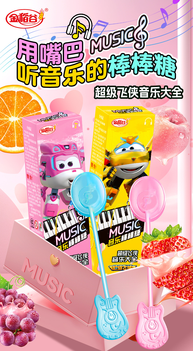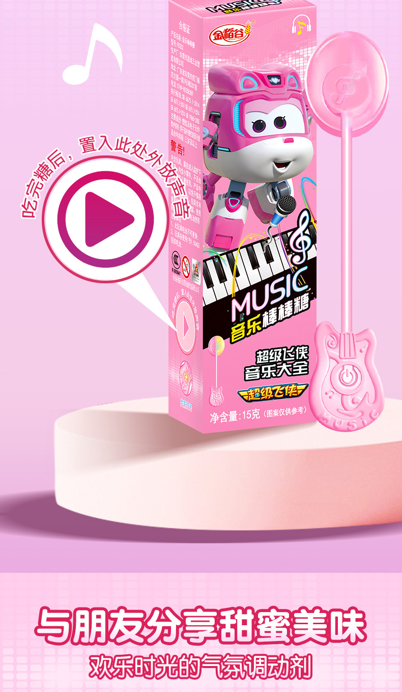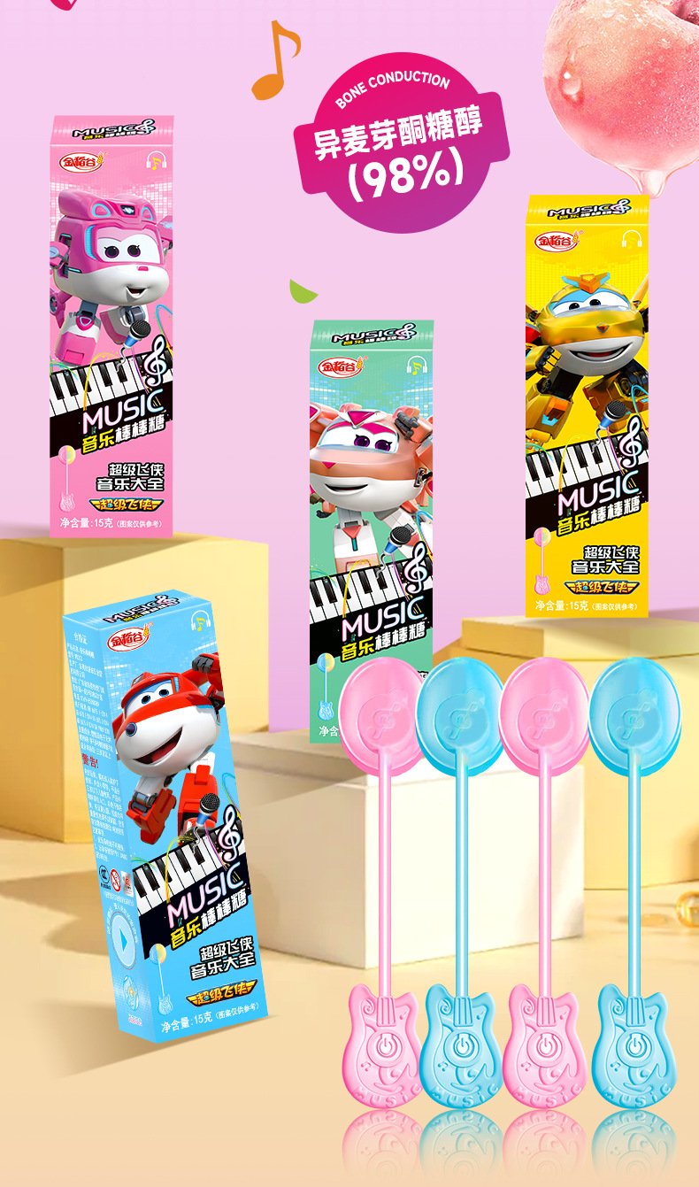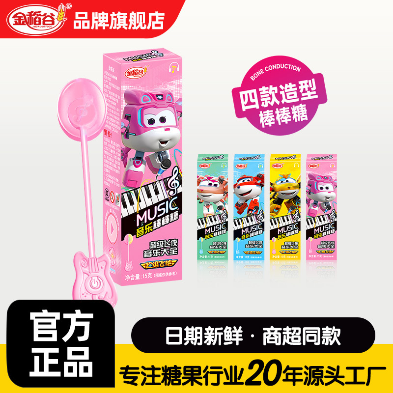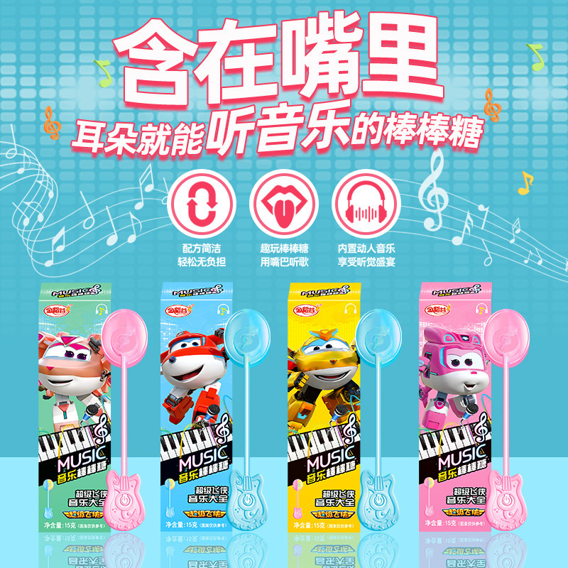 金稲谷新製品15g超飛侠音楽ロリポップ創意趣味声楽子供駄菓子箱入りキャンディー