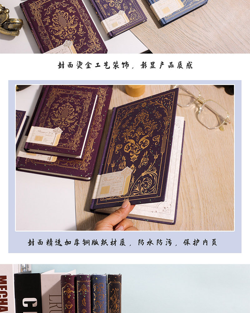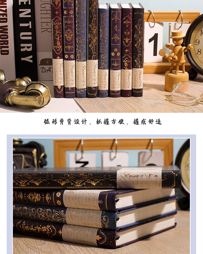 レトロ精致精装本365牛革ノートの美しい高級プレゼント手帳金硬面日記