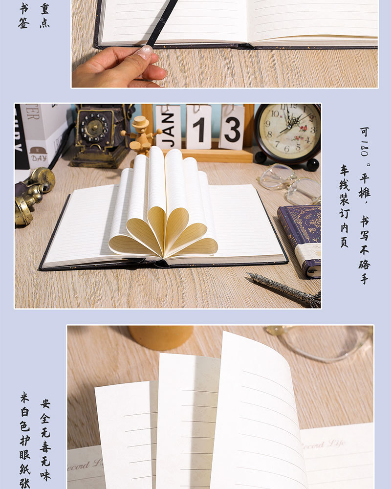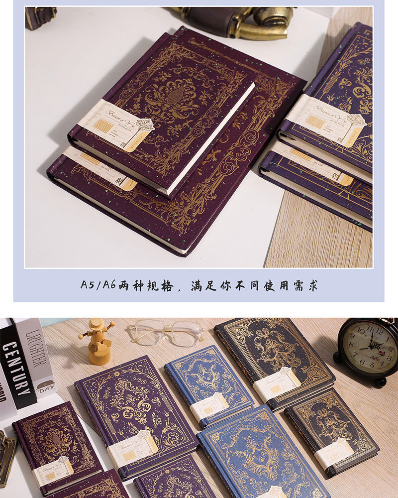 A5 A6箔押し復古アーチ型丸背本米白目保護紙は180度平屋のしおり付き手帳