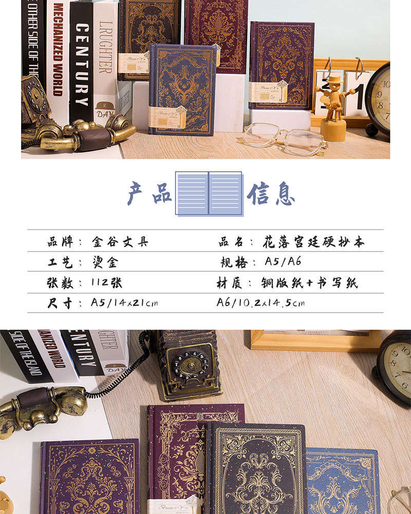 Jingu Stationery A6 ラウンドバックハードコピー (花が落ちる宮殿) ハードカバー手元帳学生メモ帳