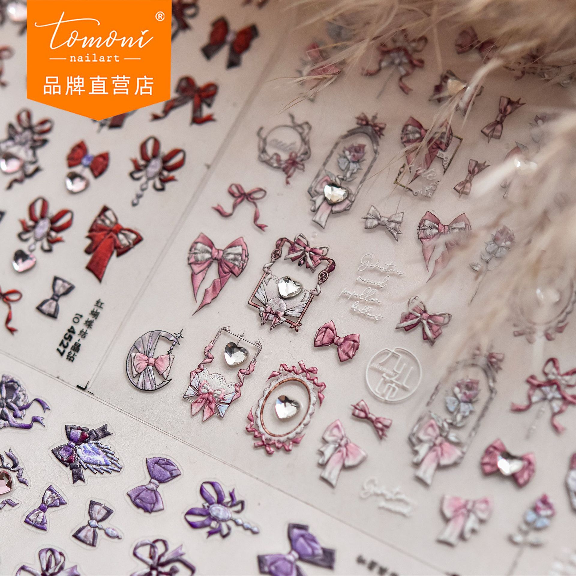 Tomoni結晶ドリルのネイルシールが爆発した日系復古爪貼り工場卸売り蝶ネクタイ爪貼り3774