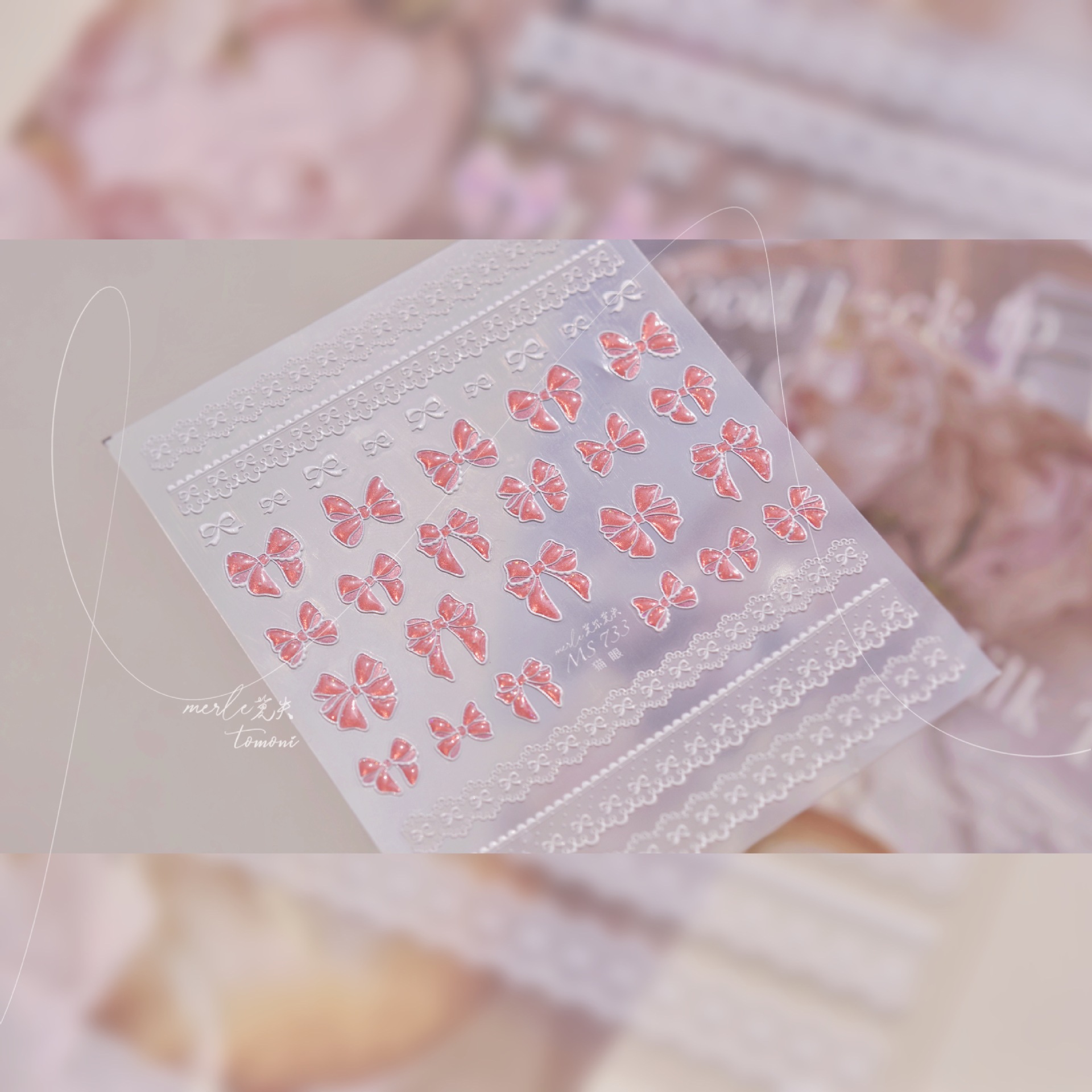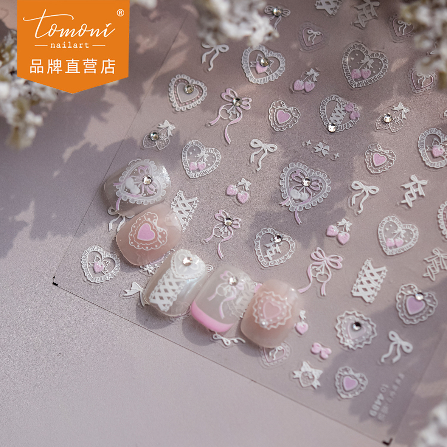Tomoni金属ネイルシール日系ins爪に手作りいちごリボン補助アクセサリーを貼る