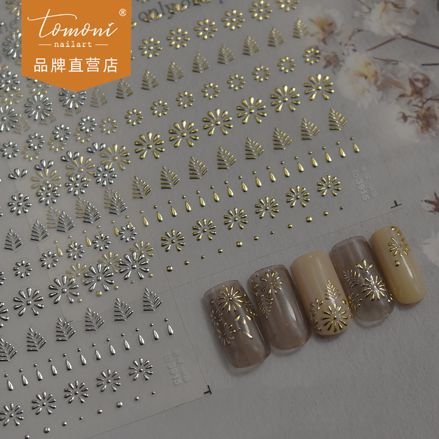 Tomoniレリーフ箔押しネイルシール起爆レトロ爪貼り工場卸売り日系デイジーシール3915