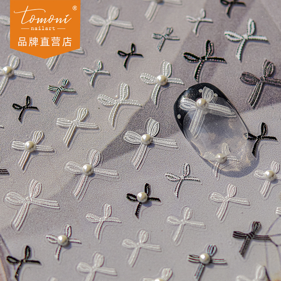 Tomoniブランドtata合作金薄靭ネイルシール爪に白黒蝶結びネイル補助シールを貼る