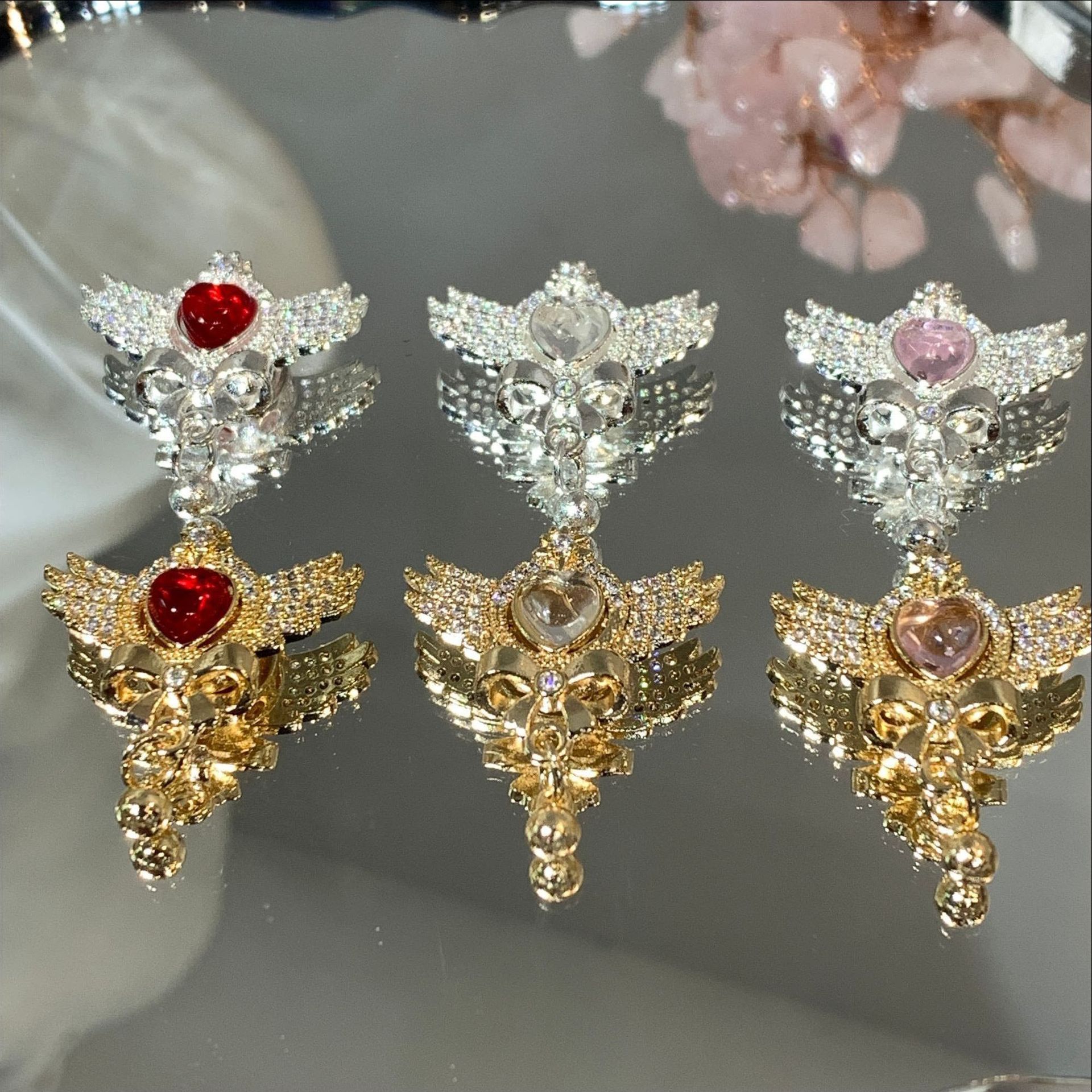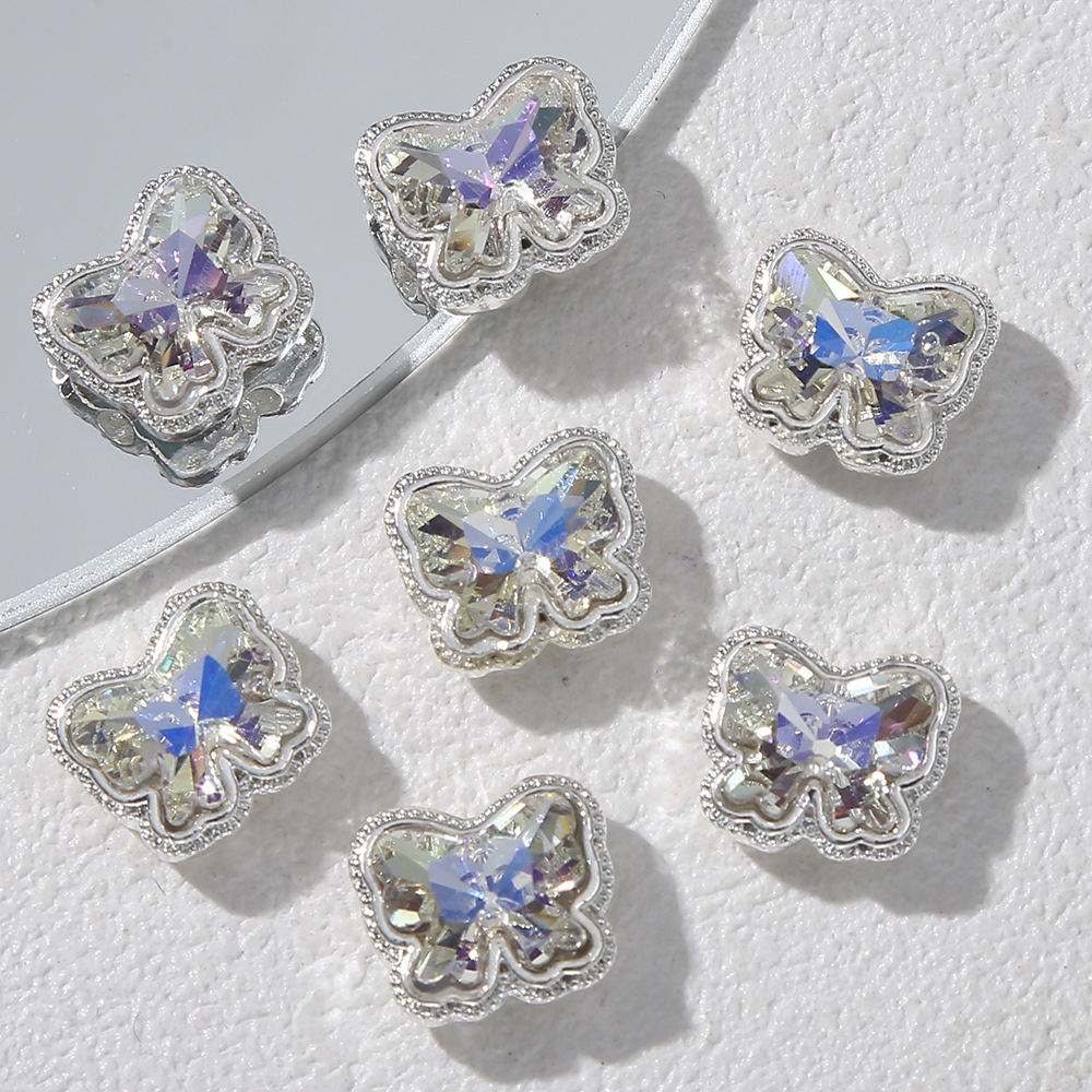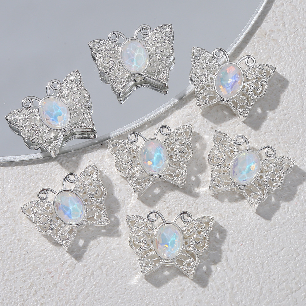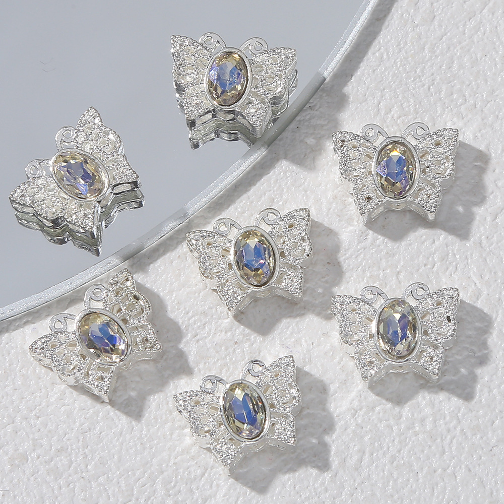 甘いクールな少女の心のダイヤモンドのアクセサリーdiyレトロな銀の蝶の愛のビーズのイヤリングのブレスレットは卸売りを飾ります。