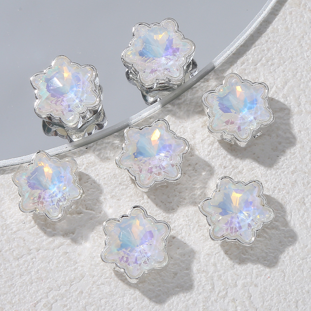 18K保色金色花托银色镂空镶嵌雪花隔珠片手串配件diy手链材料饰品