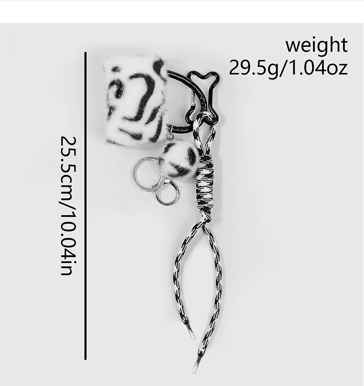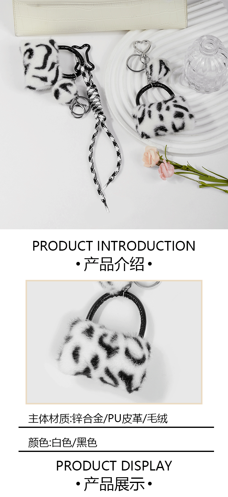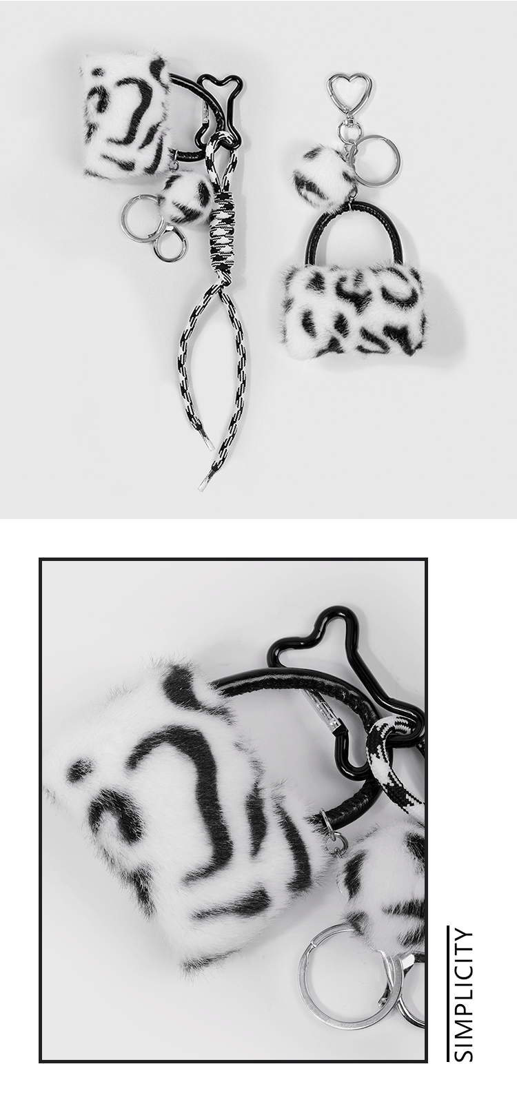 クロスボーダー爆金ins韓系甘美でクールな白黒ヒョウ柄のベルベットの小包は吊り紐DIYキーホルダーを調節できる