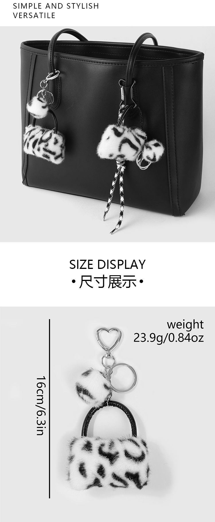 黒と白のヒョウ柄ぬいぐるみボールバッグキーホルダー 1 個,黒と白のヒョウ柄ぬいぐるみボールバッグスリングキーホルダー 1 個