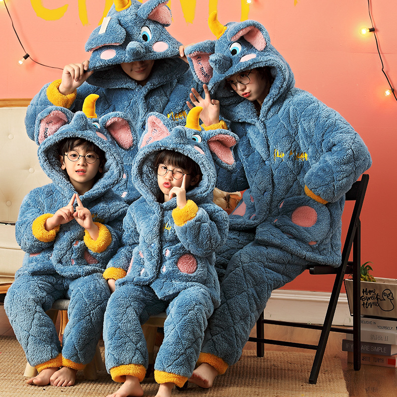 親子パジャマ冬に家族三人でベルベットと厚いサンゴのベルベットの三層に綿を挟んだ男女児童家庭服