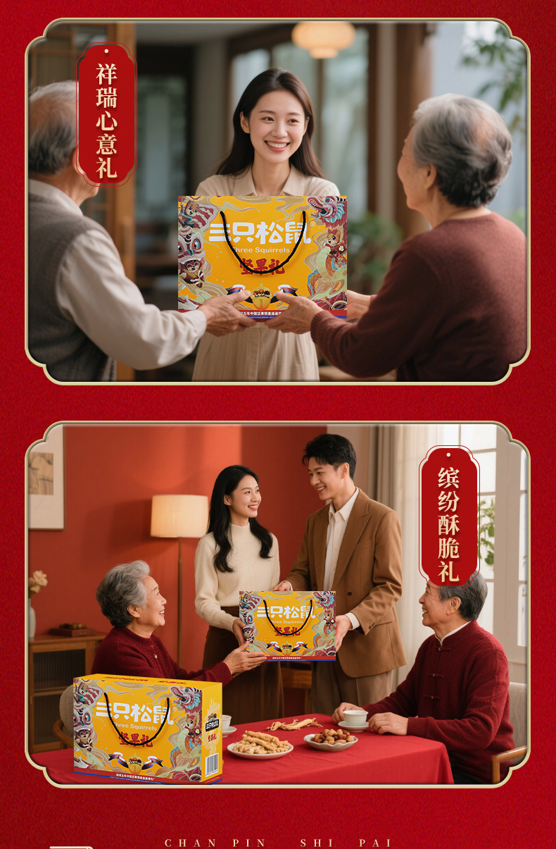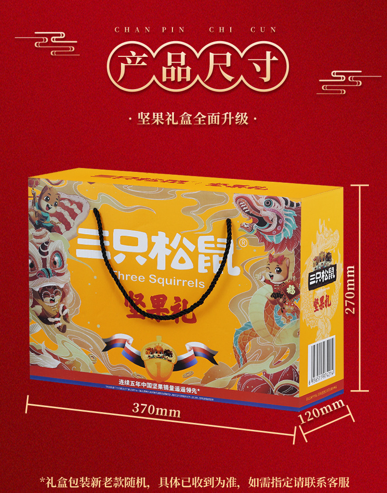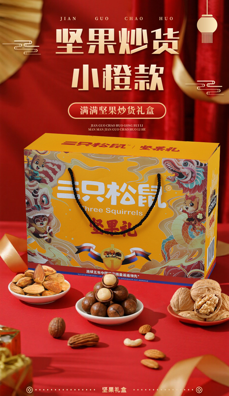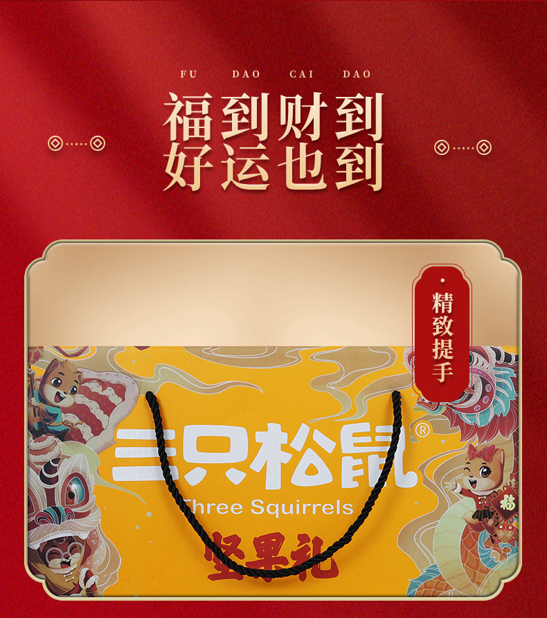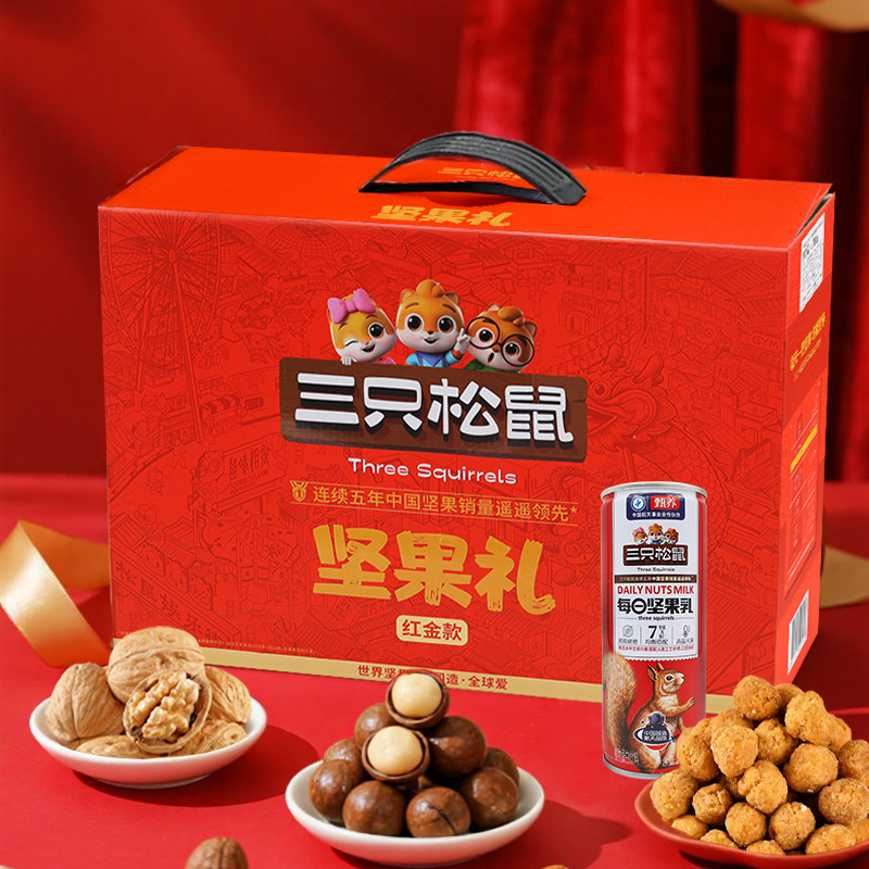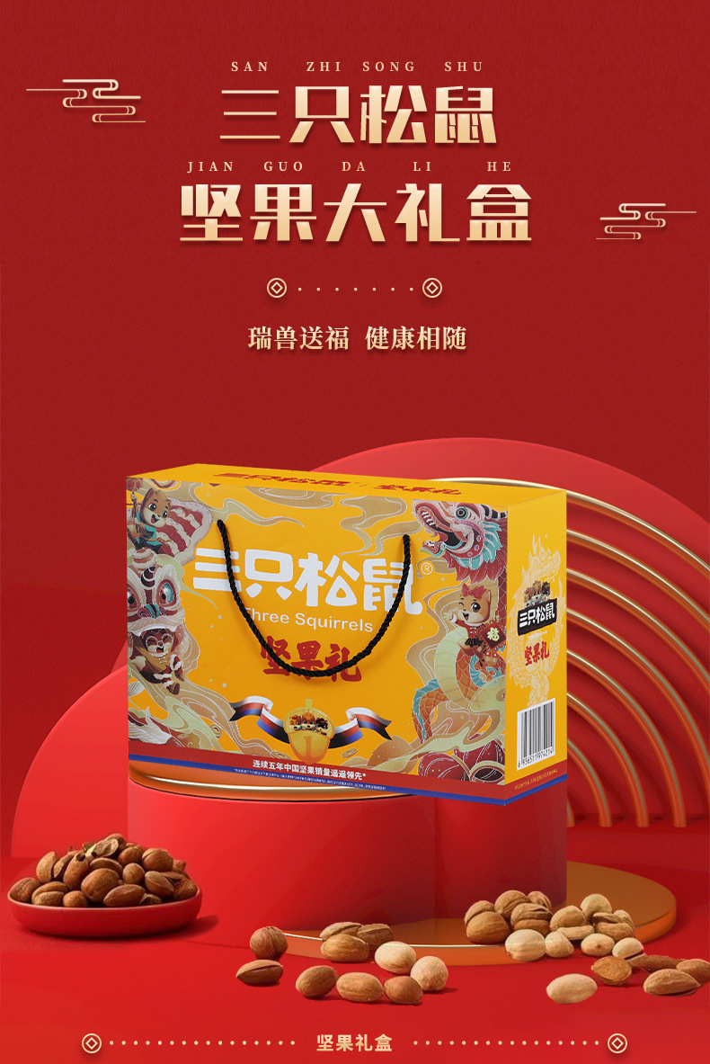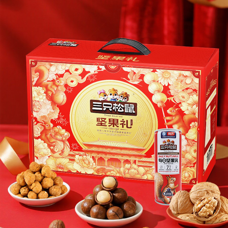 新商品2024年リスナッツ三匹礼箱龍騰金1520g/8袋目上の人がお菓子を贈るギフトバッグ