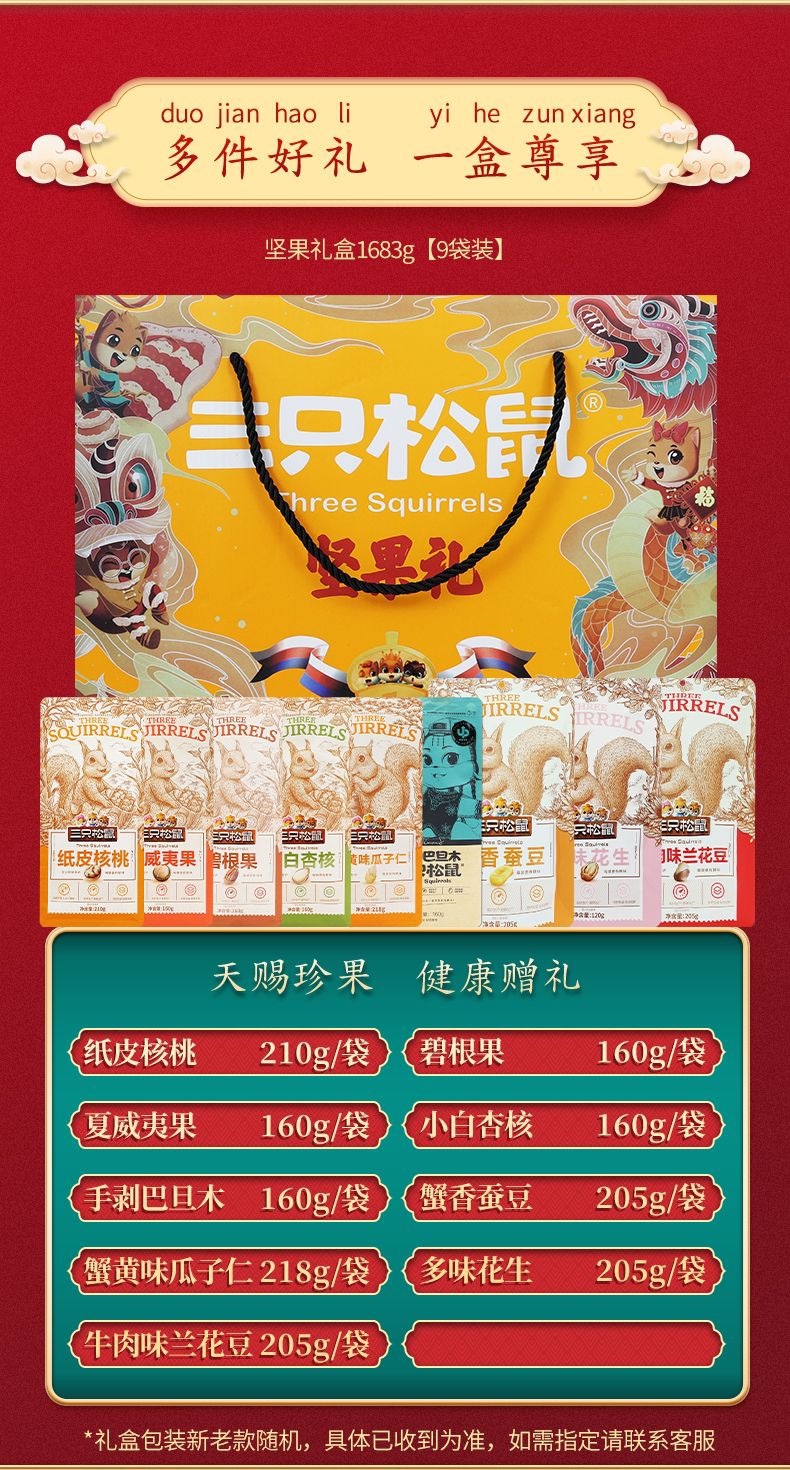 三只松鼠新年礼1500g/10袋坚果礼盒送长辈整箱健康干果休闲食品小