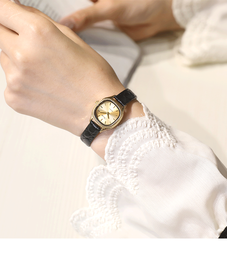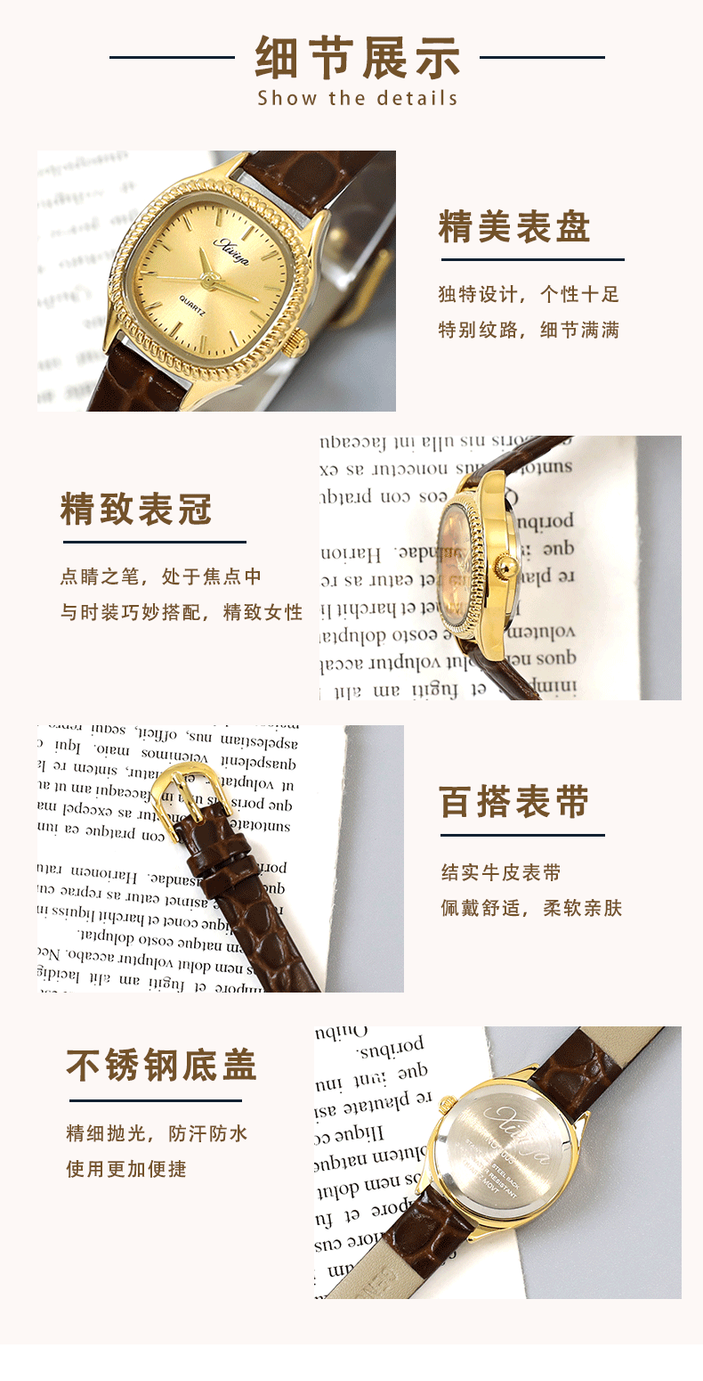 専門店の正規品の小さい四角形の腕時計の女性のタイプの真牛のベルトの防水ネットの赤い生放送の人気の爆発の爆発の金の2024新型の時計