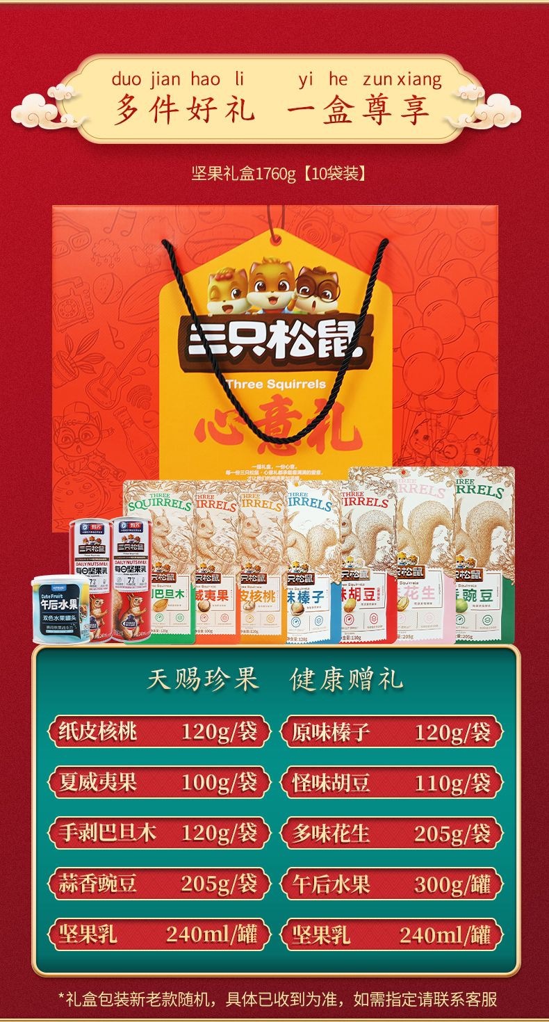リスナッツのギフトボックス1760g/9袋混合スナックのギフトバッグナッツ炒め物の組み合わせの祝日共同購入