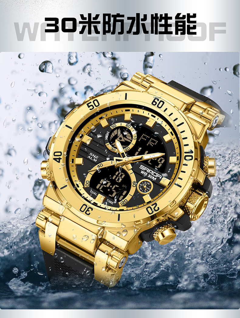 腕時計の男性の金の2024新型のファッションの潮流の小さい四角の電子の屋外の運動の夜光の防水の個性のデジタル式