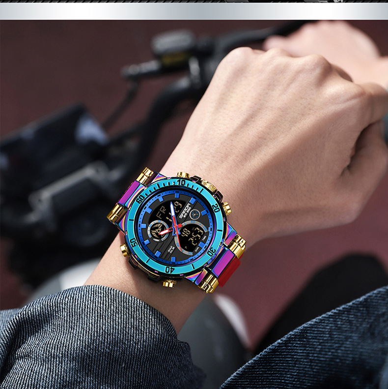 公式の正規品の腕時計の男性のタイプの電子のファッションのレジャーは爆発的な韓国版の防水の夜光の目覚まし時計の多機能の時計を生放送します。