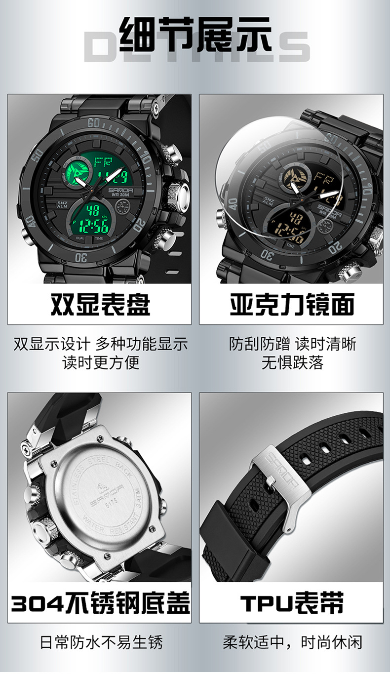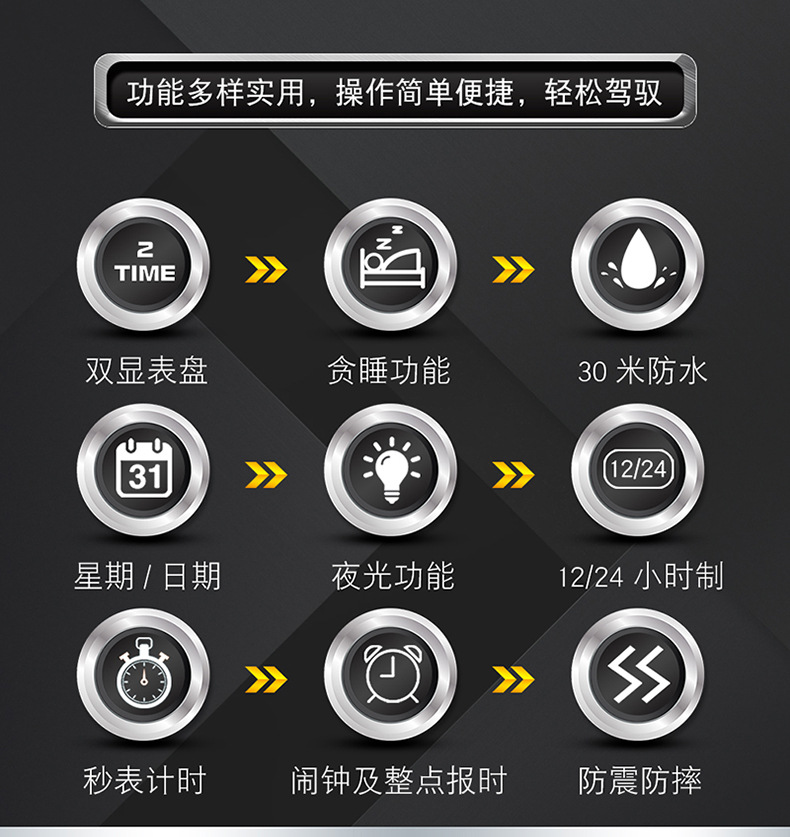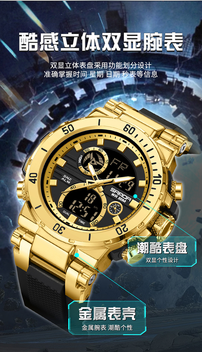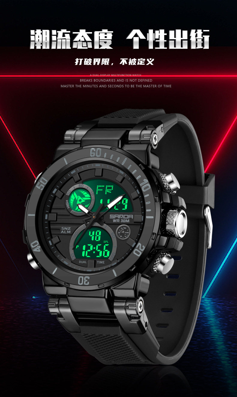専門店の正規品電子時計クロスボーダー熱売黒科技男性腕時計中高生学生多機能防水ブーム