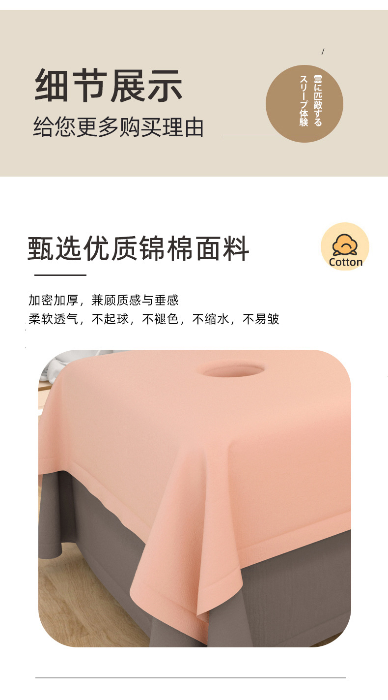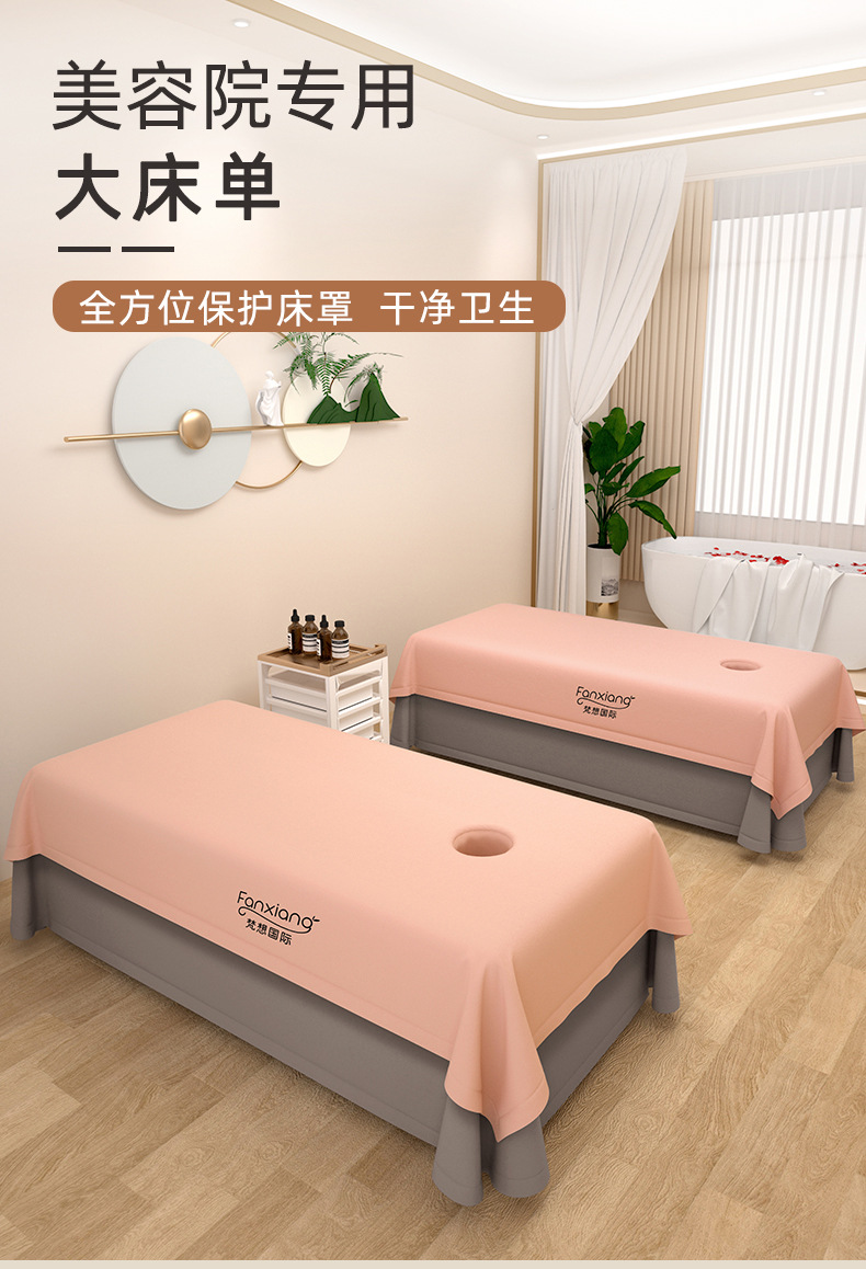 美容ベッドシーツ穴付き柔らかい肌綿純色シンプル一枚式ベッドカバー単品ベッド笠マッサージ美容院専用
