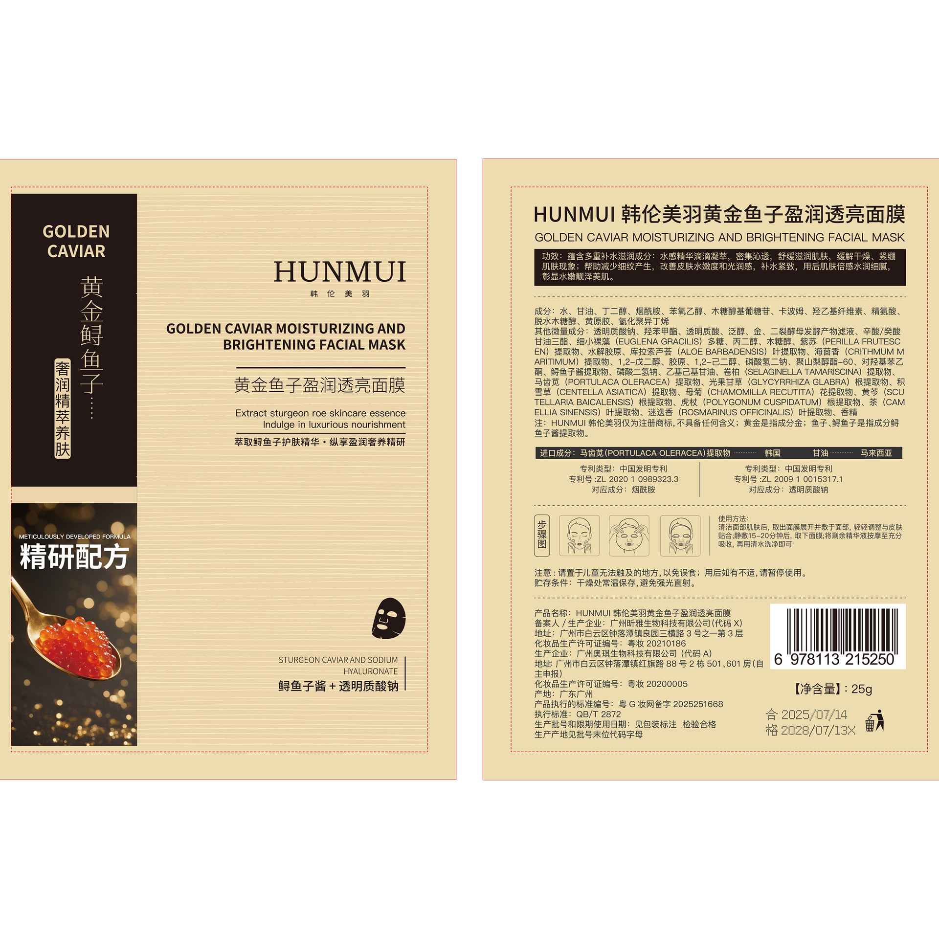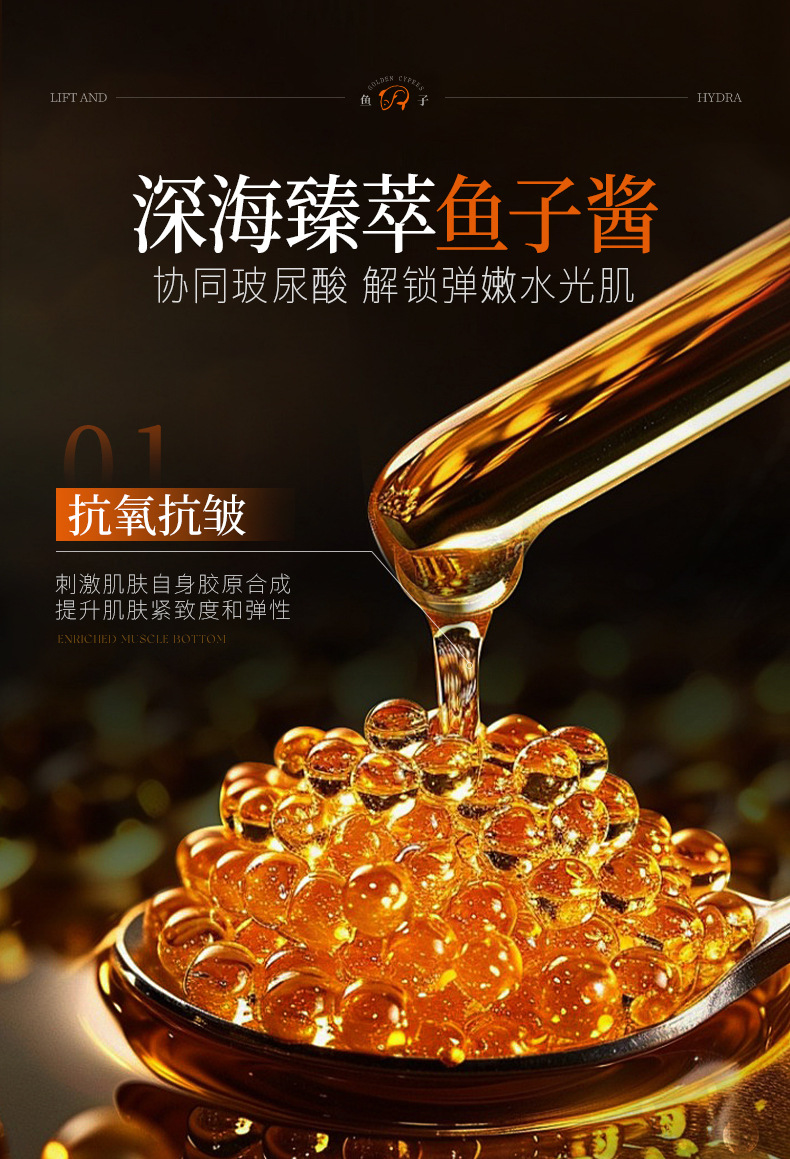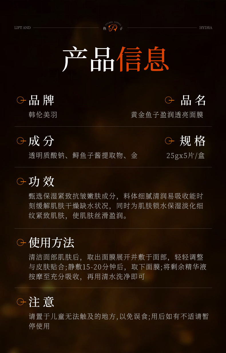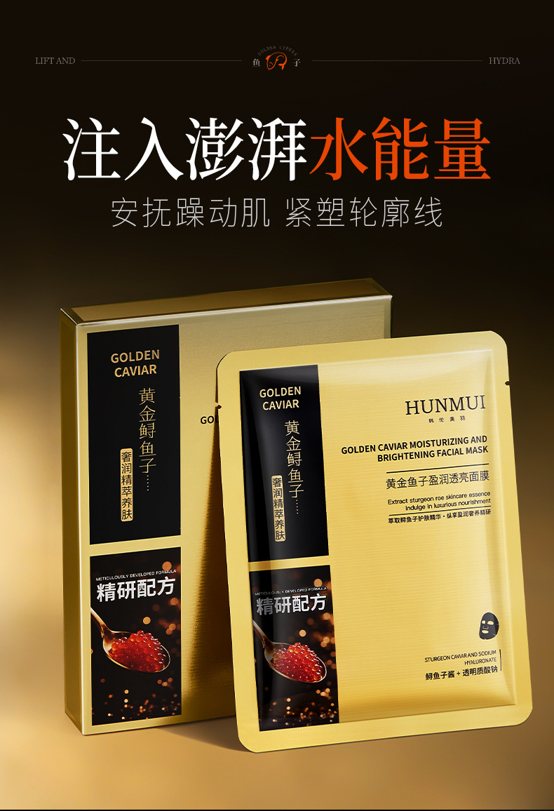 韩伦美羽黄金鱼子盈润透亮面膜保湿补水滋润黑金鲟鱼子面膜批发