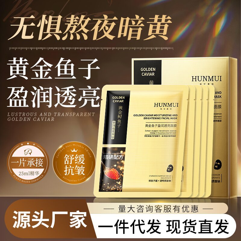 厳選されたゴールデンキャビア保湿マスク、保湿、鎮静、若返り、くすみを明るくする、保湿と夜更かしマスク