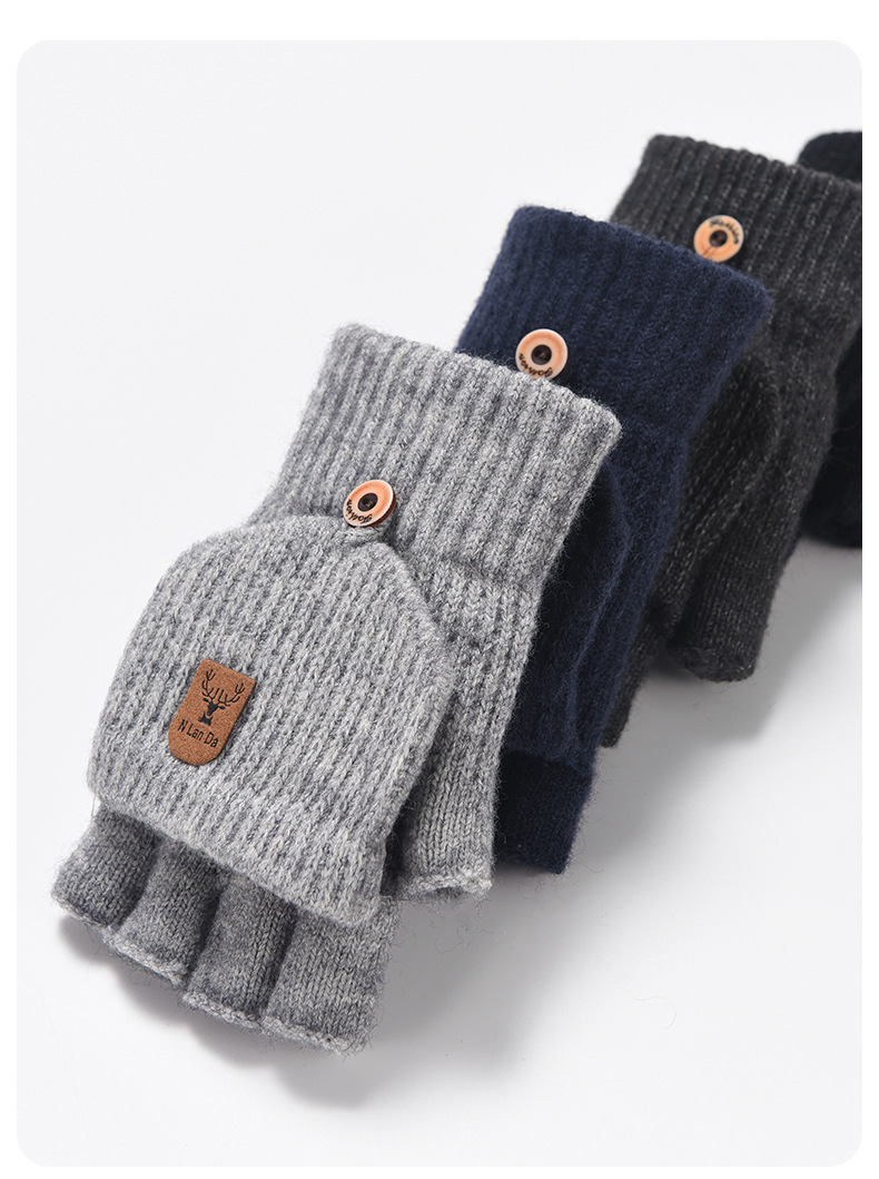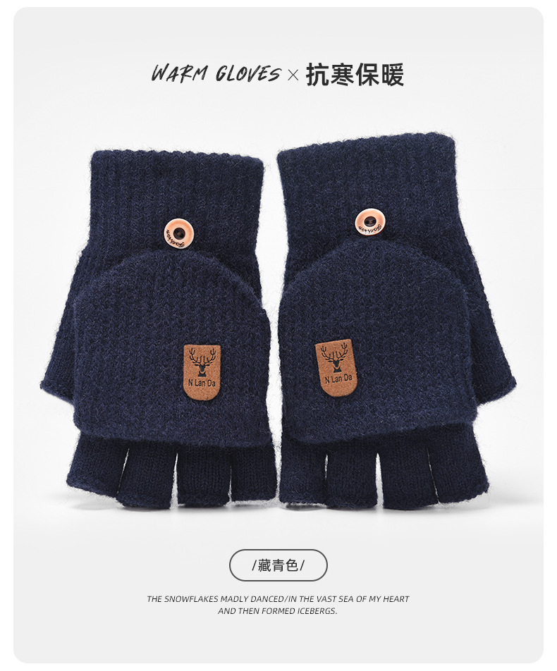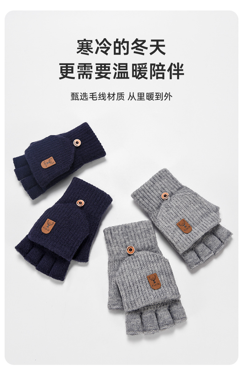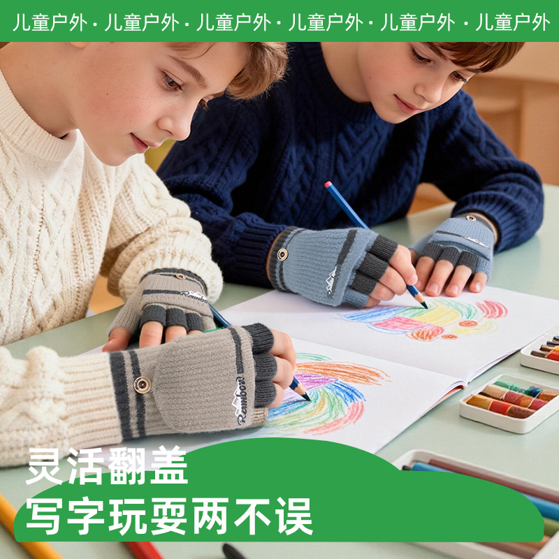 儿童手套保暖加厚针织男孩写字翻盖小学生半指写作业毛线学生手套