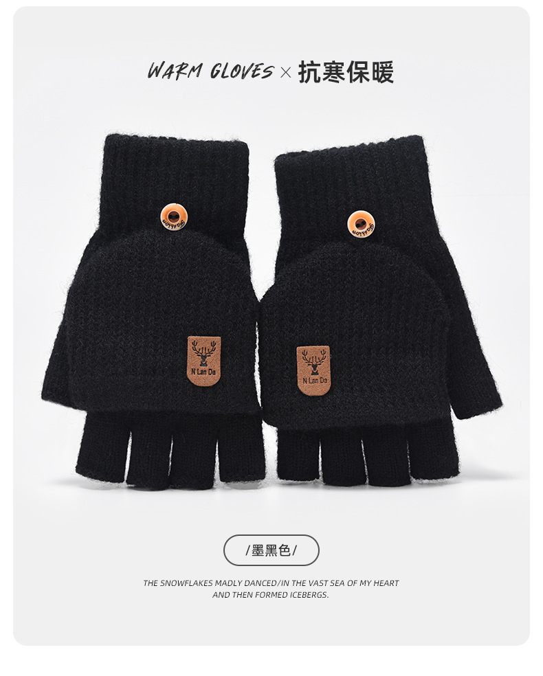 儿童翻盖手套冬季针织保暖毛线小学生初中生半指写字电脑大童男女