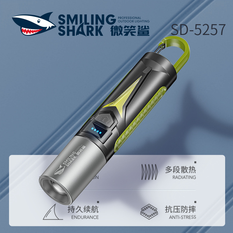 ミニ伸縮ズーム屋外強光懐中電灯携帯ロックデザイン全光サイドライト超実用キャンプライト懐中電灯